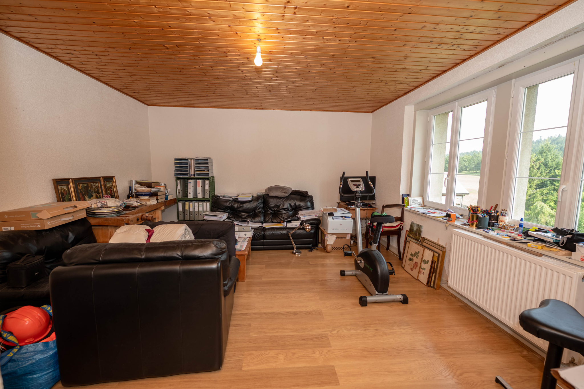 Au rez-de-chaussée, se trouve une ancienne salle de réunion d'environ 25 m2, atelier et garage de 60 m2, et au deuxième étage, des combles de 85 m2 au sol, soit une surface aménageable d'environ 110 m2 au sol.