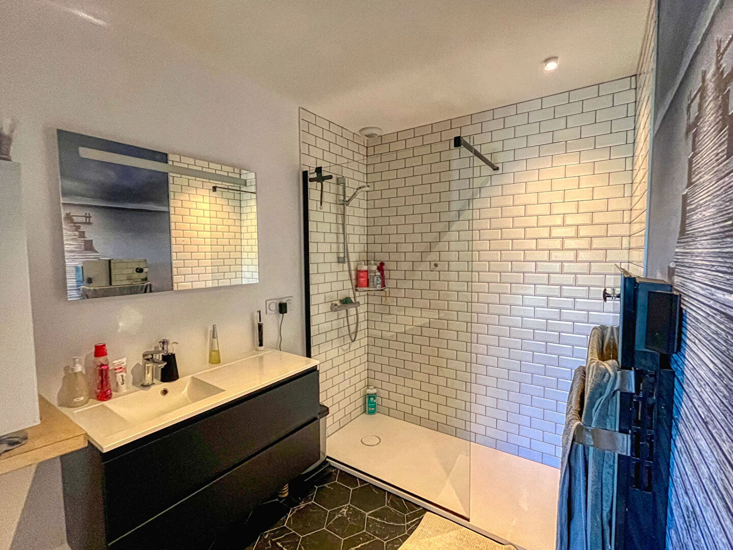 À l'étage, vous trouverez trois chambres confortables, une seconde salle d'eau avec WC, ainsi qu'une pièce supplémentaire aménagée en salle TV, espace détente ou bureau selon vos besoins.
