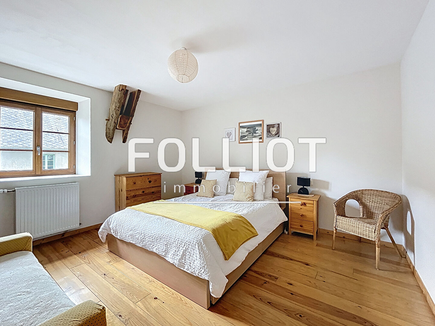 La seconde maison, actuellement à usage de gîte, complètement rénovée se compose d'une grande entrée cathédrale desservant une cuisine/salle à manger, un salon avec poêle à bois et une buanderie avec WC;