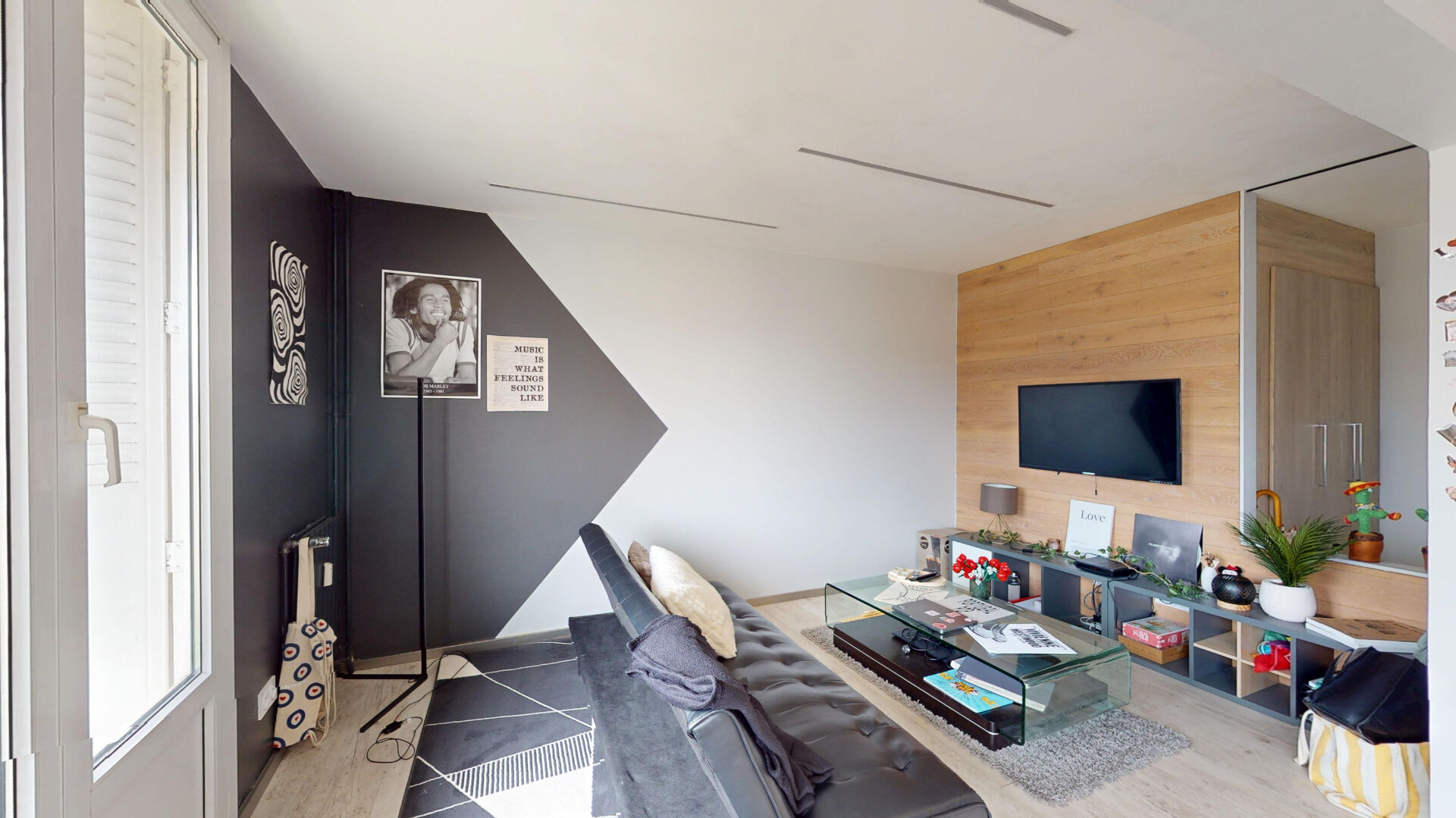 En très bon état, il se compose d'une entrée, d'un vaste salon séjour lumineux donnant accès à un grand balcon avec vue dégagée, ainsi que d'une cuisine moderne entièrement équipée, ouverte sur l'espace de vie et bénéficiant d'un accès à une loggia.