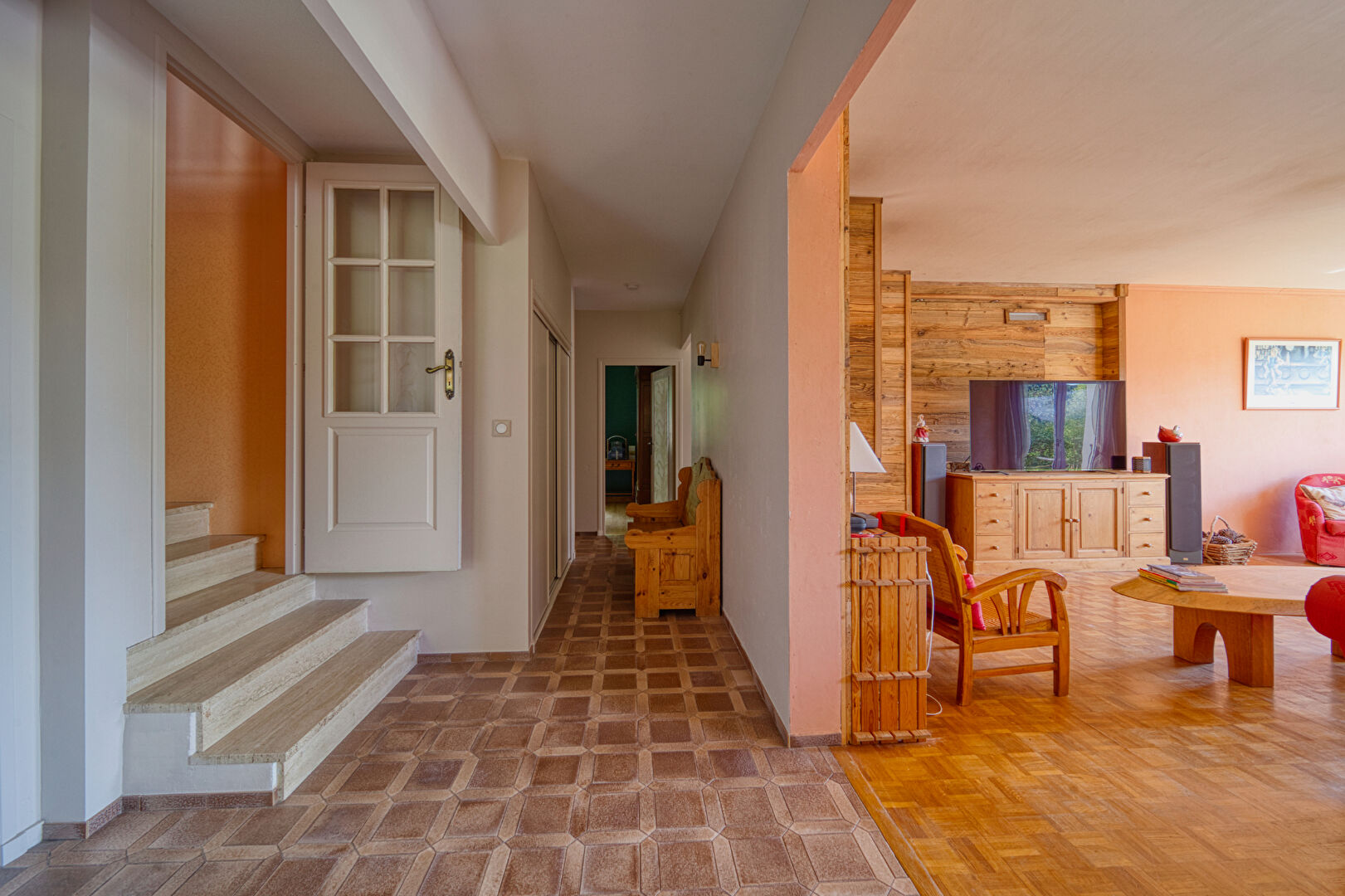 - Une pièce de vie lumineuse de 42 m² avec cheminée, ouvrant sur une belle terrasse