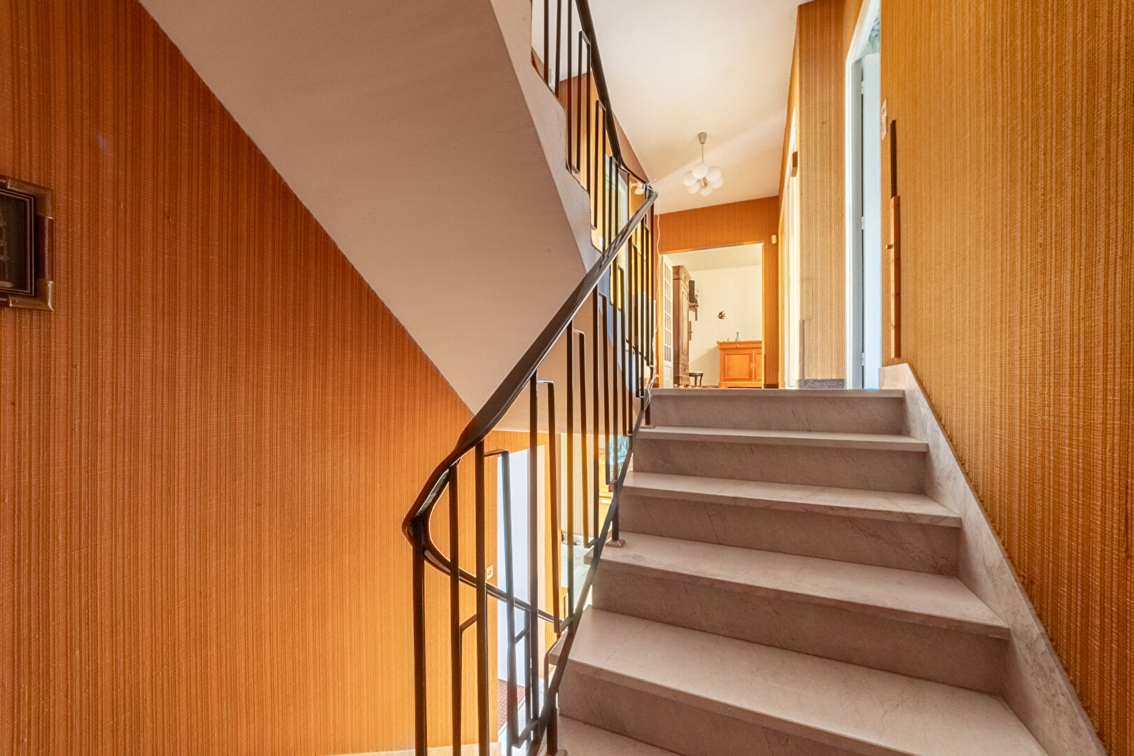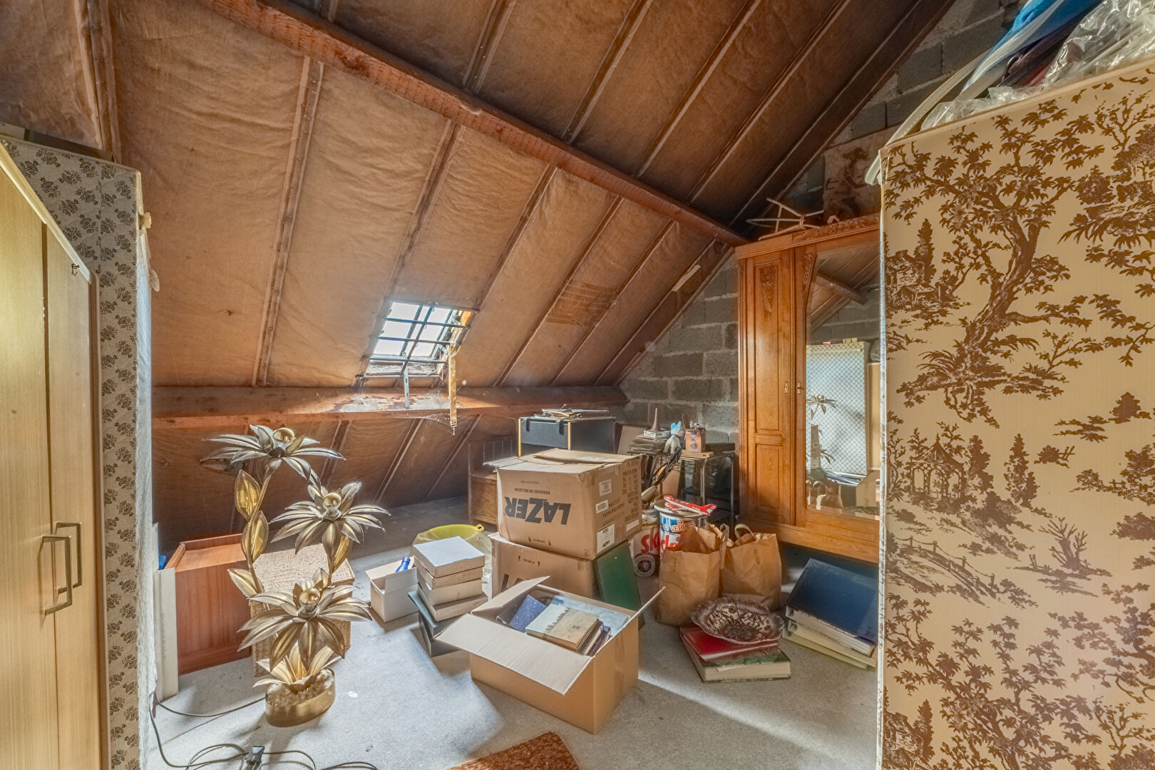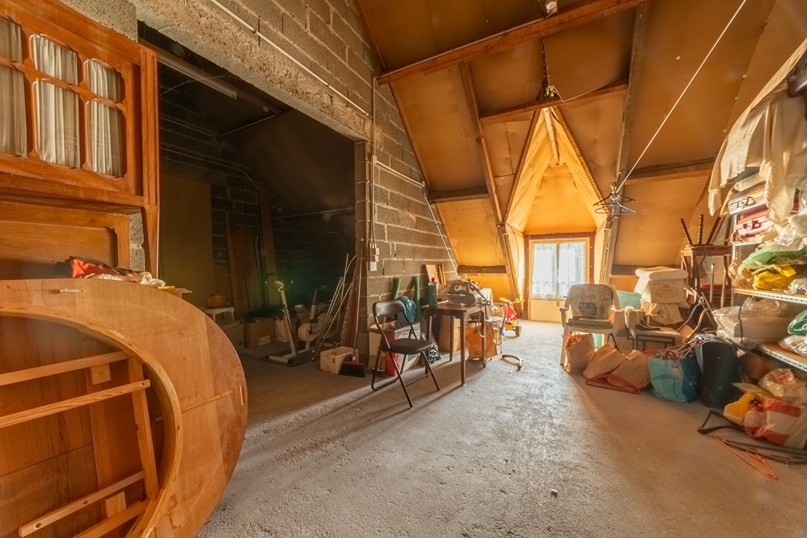 Elle se compose actuellement d'un vaste garage, d'espaces de vie lumineux avec vue dégagée sur le jardin, ainsi que de trois chambres. Les combles d'une surface globale de 65 m² du deuxième étage peuvent être aménagés en 2 ou 3 chambres supplémentaires selon vos envies, laissant place à un véritable projet personnalisé.