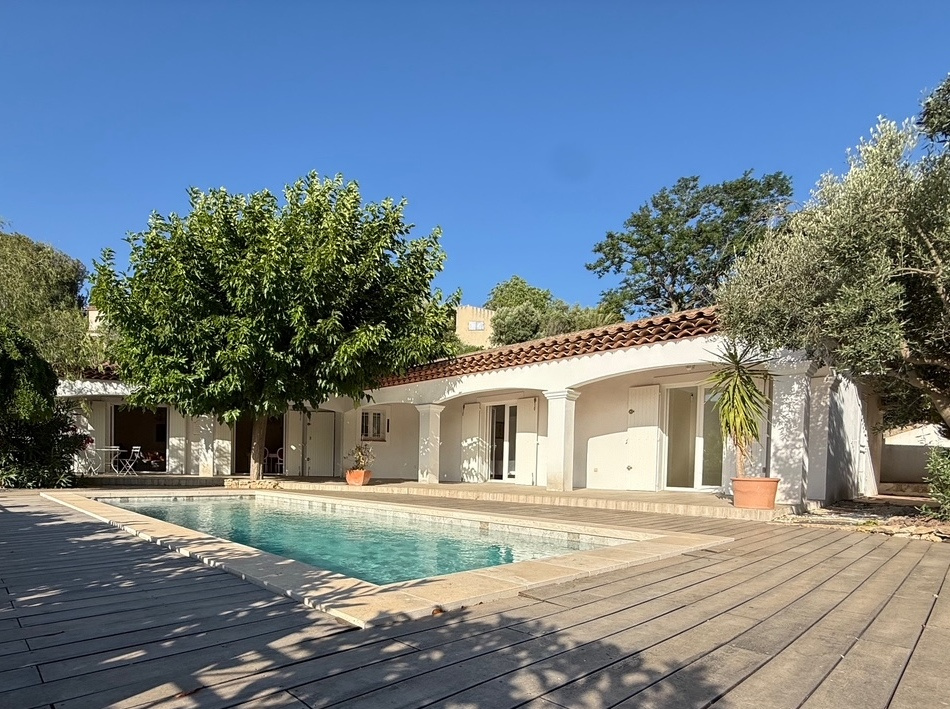 Située sur les hauteurs d'Ollioules, à proximité du village à pied, cette superbe villa traditionnelle de 160 m2 vous séduira par son environnement calme, et sa vue dégagée. Accueillante pour recevoir vos enfants, votre famille, vos amis, vous apprécierez les 5 chambres (2 indépendantes), les 4 salles de bains. Climatisation réversible dans la suite parentale et une des chambres indépendantes. L'espace de vie comprend un large séjour-salon cheminée avec baies à galandages et cuisine semi-ouverte équipée avec accés sur la terrasse et la piscine. Communication intérieure au garage et à un sous sol pour le stockage et bricolage. Très belle parcelle de 1000 m2 arborée avec piscine traditionnelle en béton carrelée de 8.50x3.50 au sel avec volet intégré. Arrosage automatique.