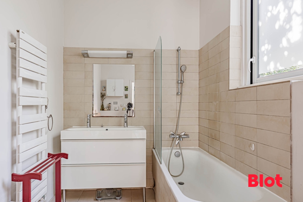 Deux grandes chambres de plus de 17 m² chacune offrent de beaux volumes, complétées par une salle de bains avec WC.