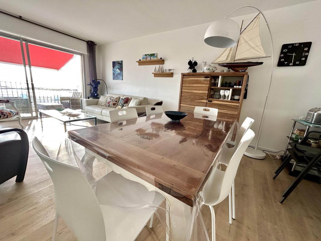 Emplacement d'exception face mer, plage du Nau avec vue sur la pointe de Penchateau, à deux pas du port, des commerces et du petit bois, appartement traversant et très ensoleillé, d'une surface habitable de 72,48 m² offrant un beau séjour sur terrasse vue plage pour profiter du panorama, cuisine aménagée et quipée, 2 chambres sur balcon ouest, salle de bains et W.C. indépendants. nombreux placards penderies.