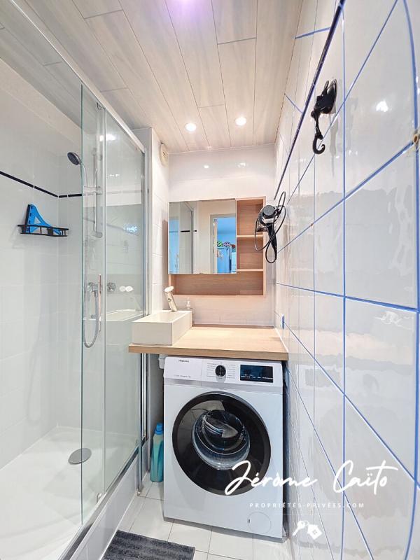 Quartier du Palais de la Mer derrière le Seaquarium, proche des commerces de proximité et de la plage (150 m), je vous présente ce T2 cabine en rez de jardin, de 32 m² (26,49 m² Carrez + 6 m² loggia).