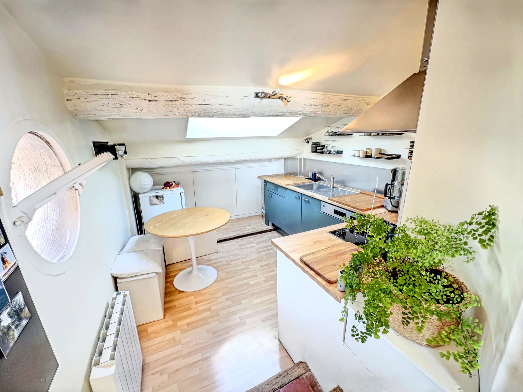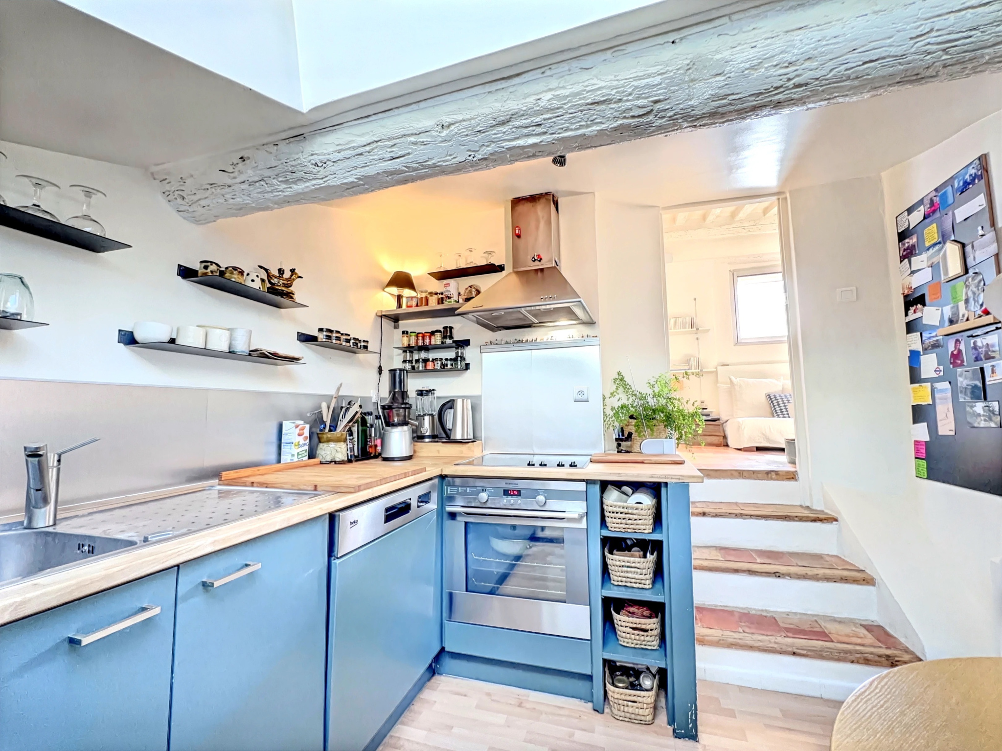 Sur la ville d'Aix-en-Provence, très rare à la vente : nous vous proposons d'acquérir un appartement T3 (2 chambres) de 61.17 m2 Carrez (76 m2 au sol), en dernier étage du quartier Mazarin. Sa vue plein sud s'ouvre sur les toits de la ville, sans vis à vis. Son séjour a la chance de disposer d'une cheminée fonctionnelle. Ce bien est situé dans un hôtel particulier.