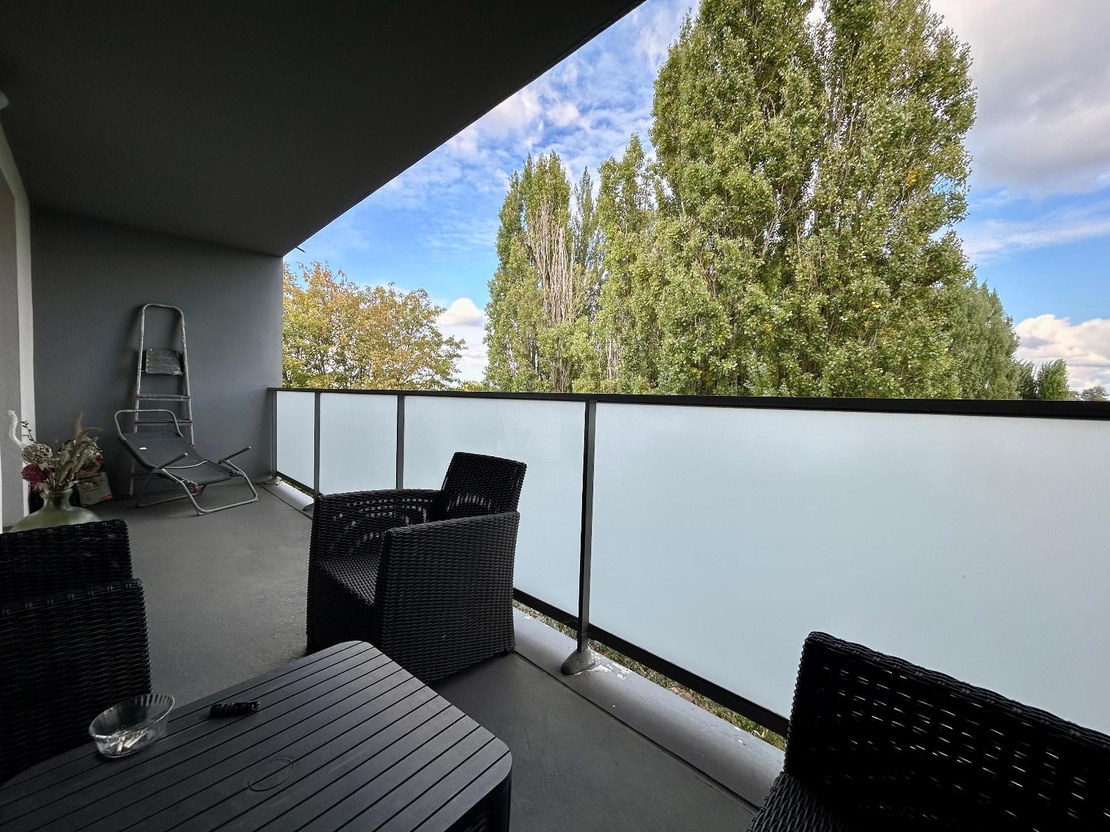 Un bel espace de vie lumineux de 23,38 m² avec parquet, cuisine ouverte et équipée avec une baie vitrée donnant sur un balcon sans vis-à-vis, offrant une vue dégagée sur la verdure