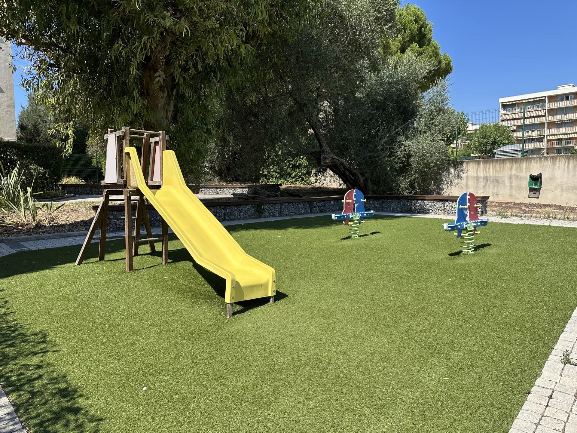 - Espaces de loisirs et convivialité : terrain de pétanque, foot et basket, jardin d’enfants, parking collectif et emplacement protégé pour scooters.