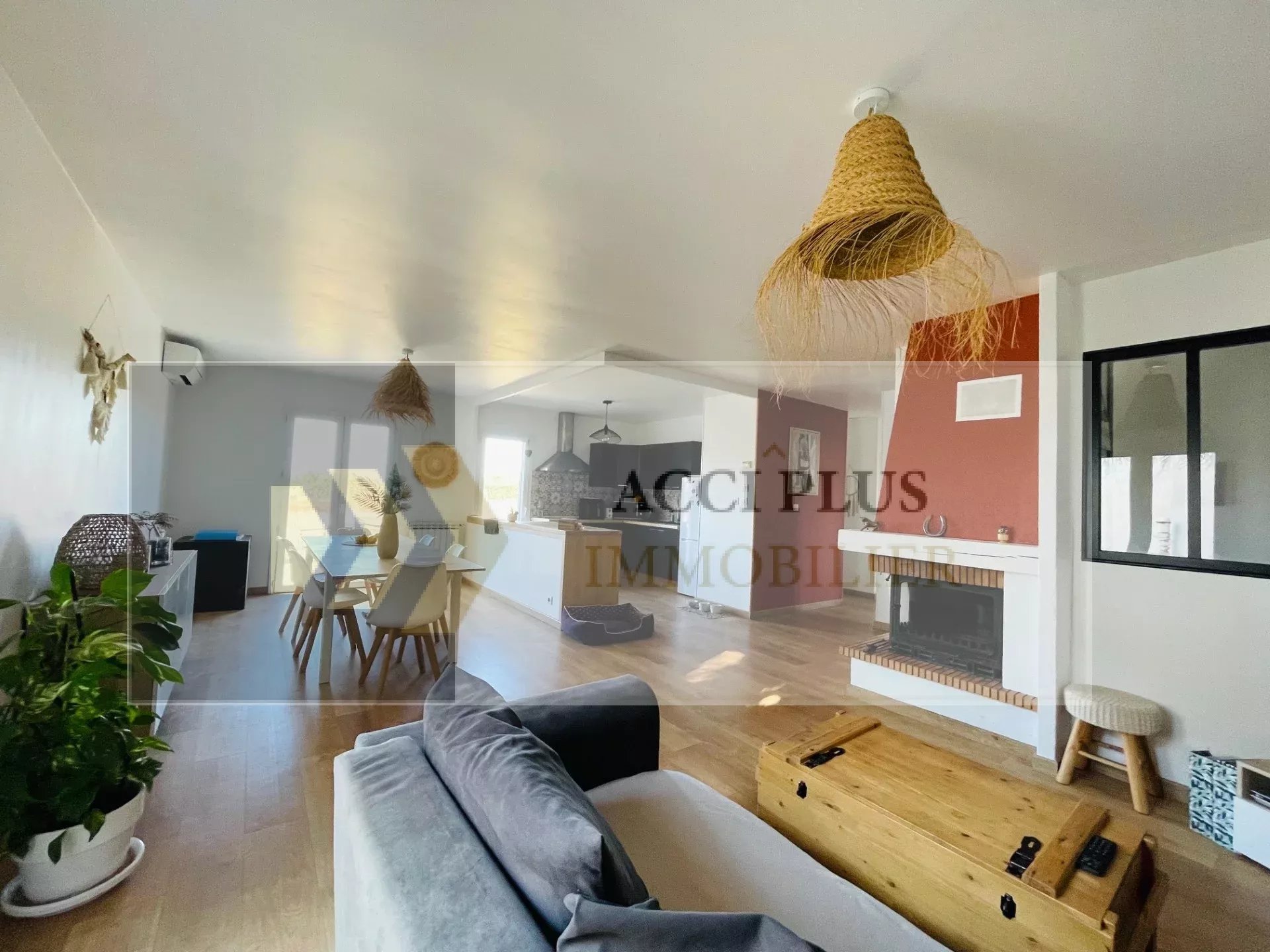 Une pièce de vie chaleureuse avec cheminée et climatisation réversible