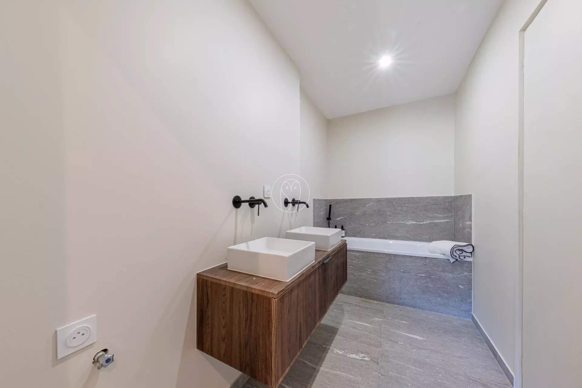 Il se compose d’un vaste séjour lumineux avec cuisine ouverte donnant accès à une terrasse et à un jardin privatif exposé plein sud.