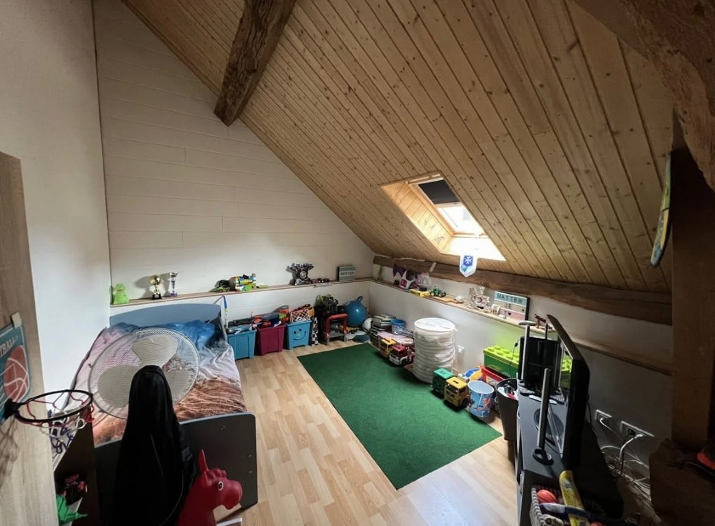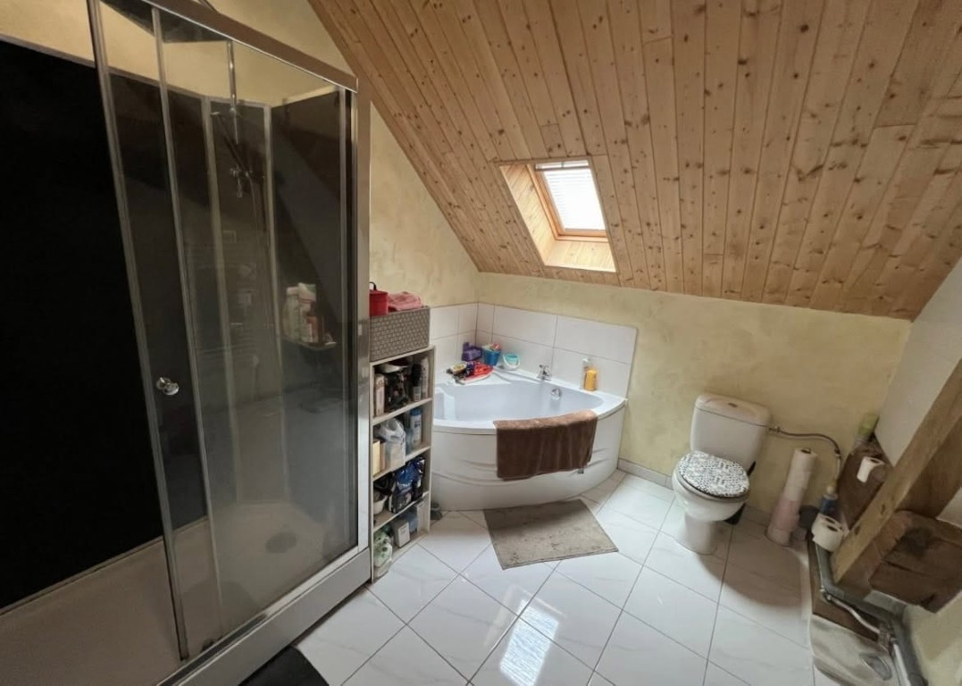 Au premier étage: TROIS chambres semi mansardées dont une avec dressing, une salle de bain avec douche et cabinet d'aisance.