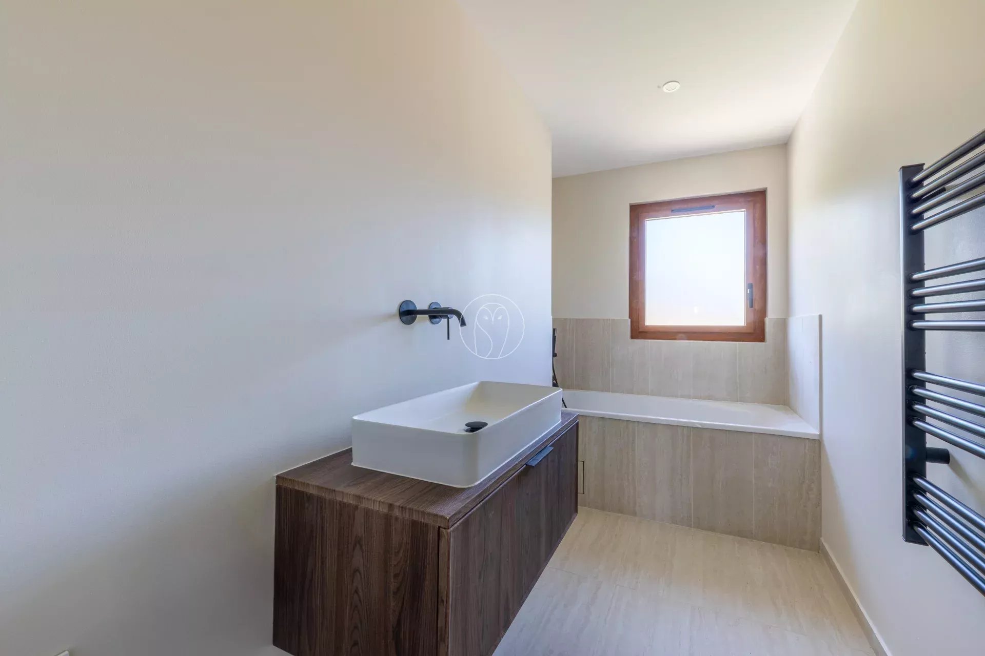 À l’étage, une seconde chambre spacieuse sous combles avec sa salle de bains complète l’ensemble.