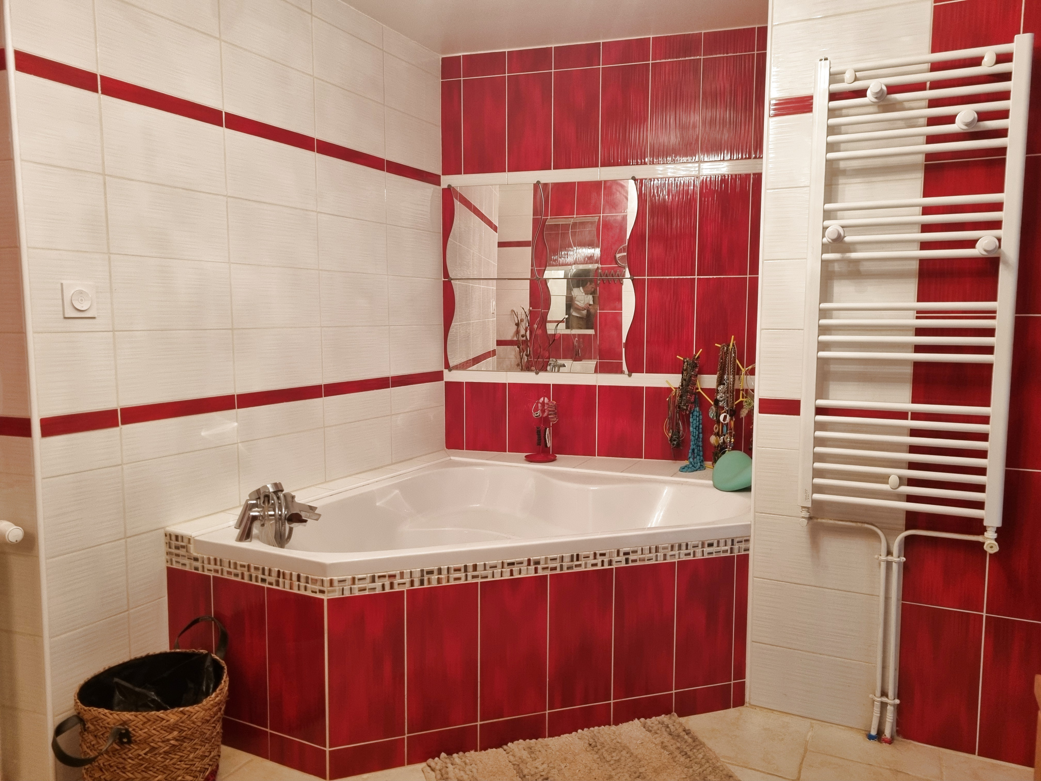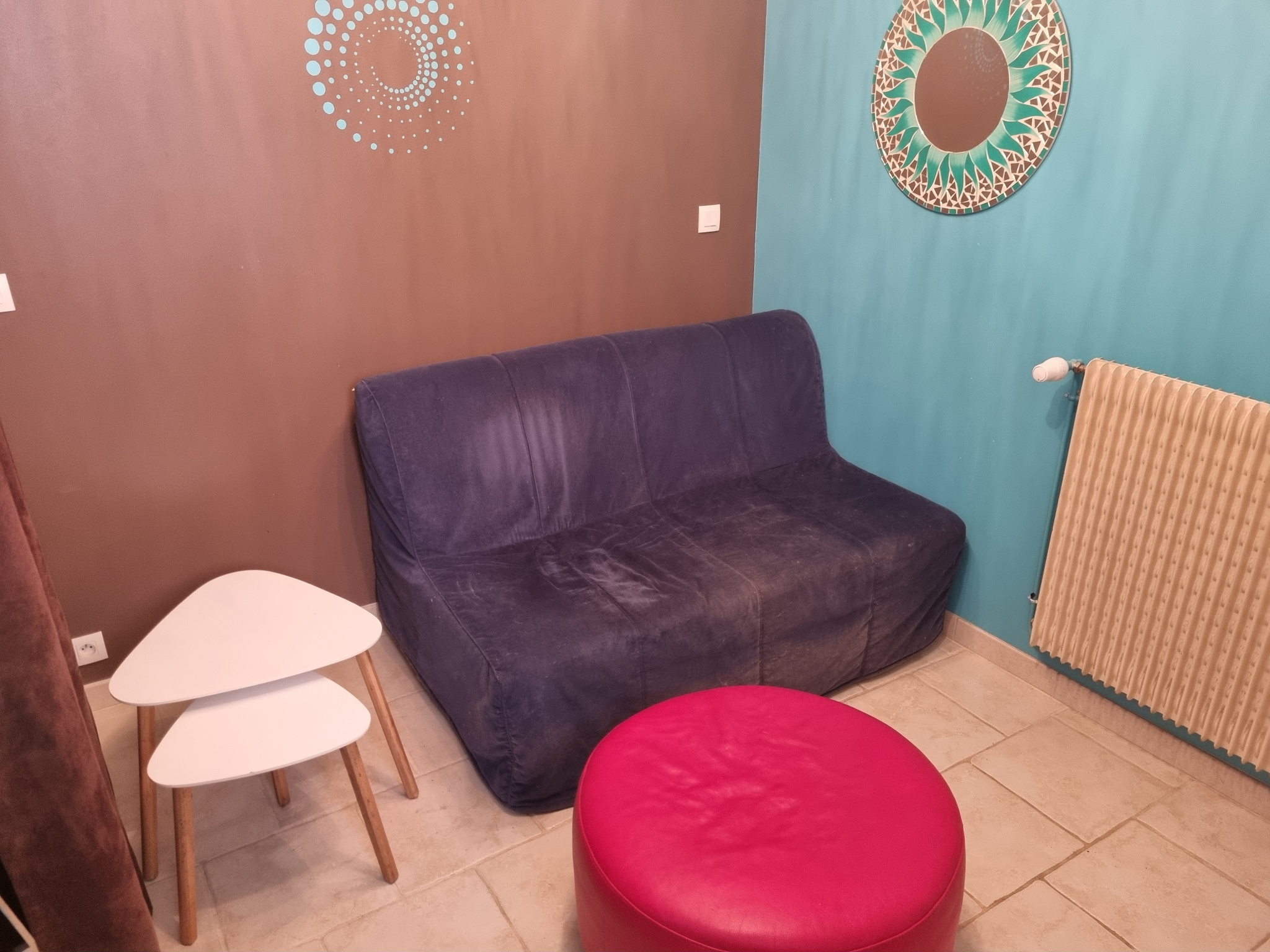 La maison dispose au rdc d'un hall d'entrée, d'une cuisine dinatoire entièrement équipée et aménagée, d'un dégagement deservant une salle de bain fraichement rénovée avec douche, un toilette et un bureau.
