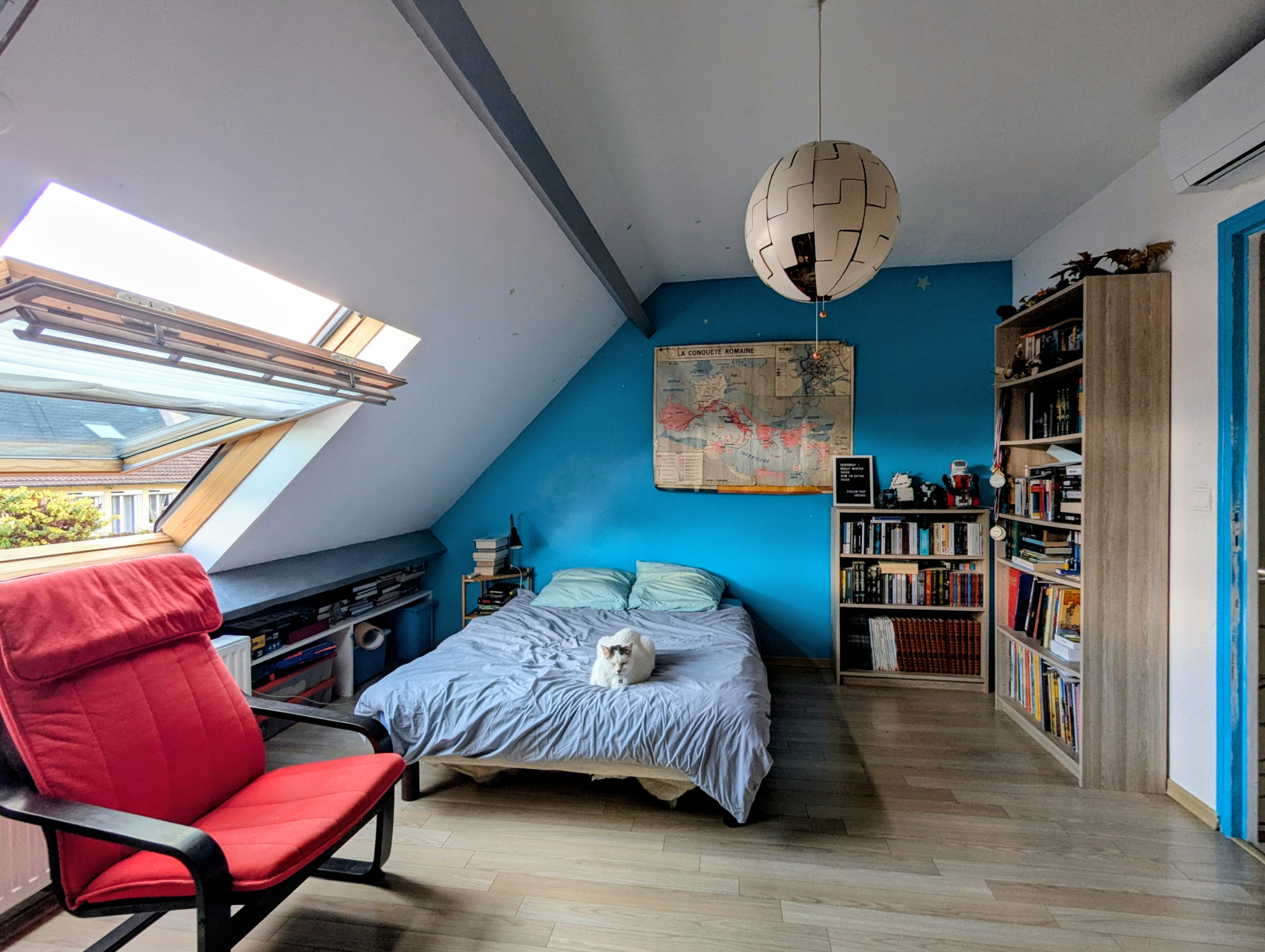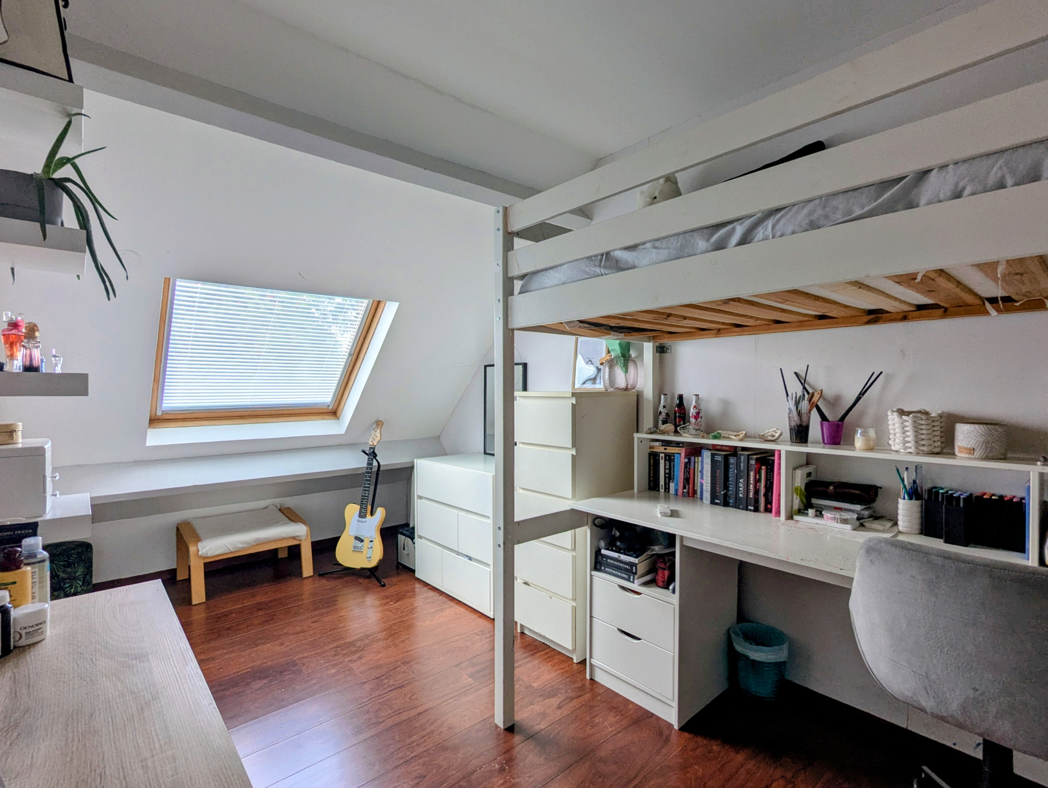 Au coeur d'un quartier agréable et residentiel, venez découvrir cette maison d'architecte vous offrant, entrée avec placards, séjour avec poele à bois, cuisine aménagée avec accès terrasse, au demi niveau supérieur, palier, chambre, salle de bains, wc. Au premier, palier, deux chambres et dressing. Garage intégré avec coin atelier et buanderie. Chauffage central au gaz complété d'une climatisation. Le tout édifié sur un terrain clos et arboré de 402m2 avec abri et terrasse couverte. Une belle affaire