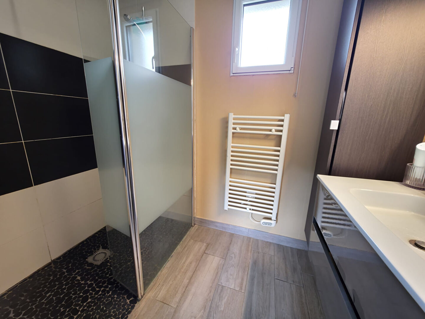 À l'étage, un dégagement avec rangements dessert une chambre avec salle d'eau privative, deux autres chambres avec placards, ainsi qu'une salle de bains indépendante.