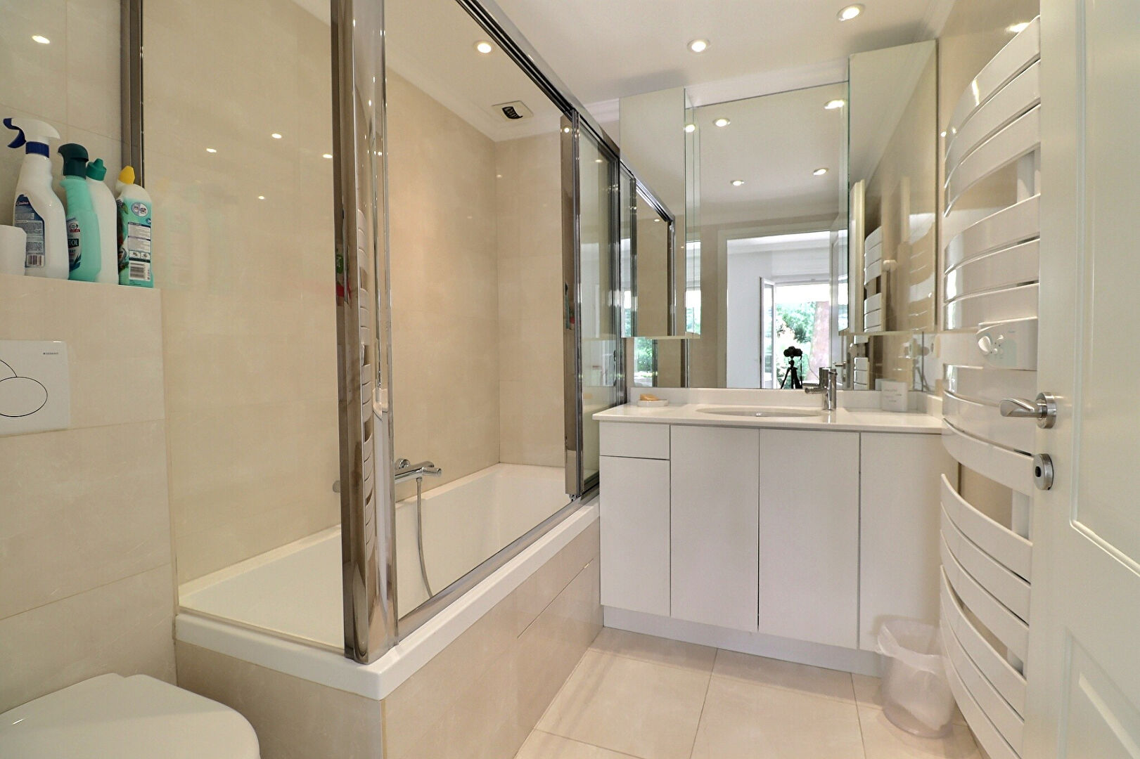 Saint-Raphaël Valescure, à proximité des golfs: Superbe appartement de haut standing , exposition Sud-Ouest, avec grande terrasse et jardin privatifs, donnant sur une très belle piscine entourée de palmiers. Dans une petite copropriété de 7 lots, avec grande cave et garage fermé. Suite parentale avec sa salle de bain et une autre chambre avec sa salle d'eau. Cuisine semi ouverte sur le séjour.