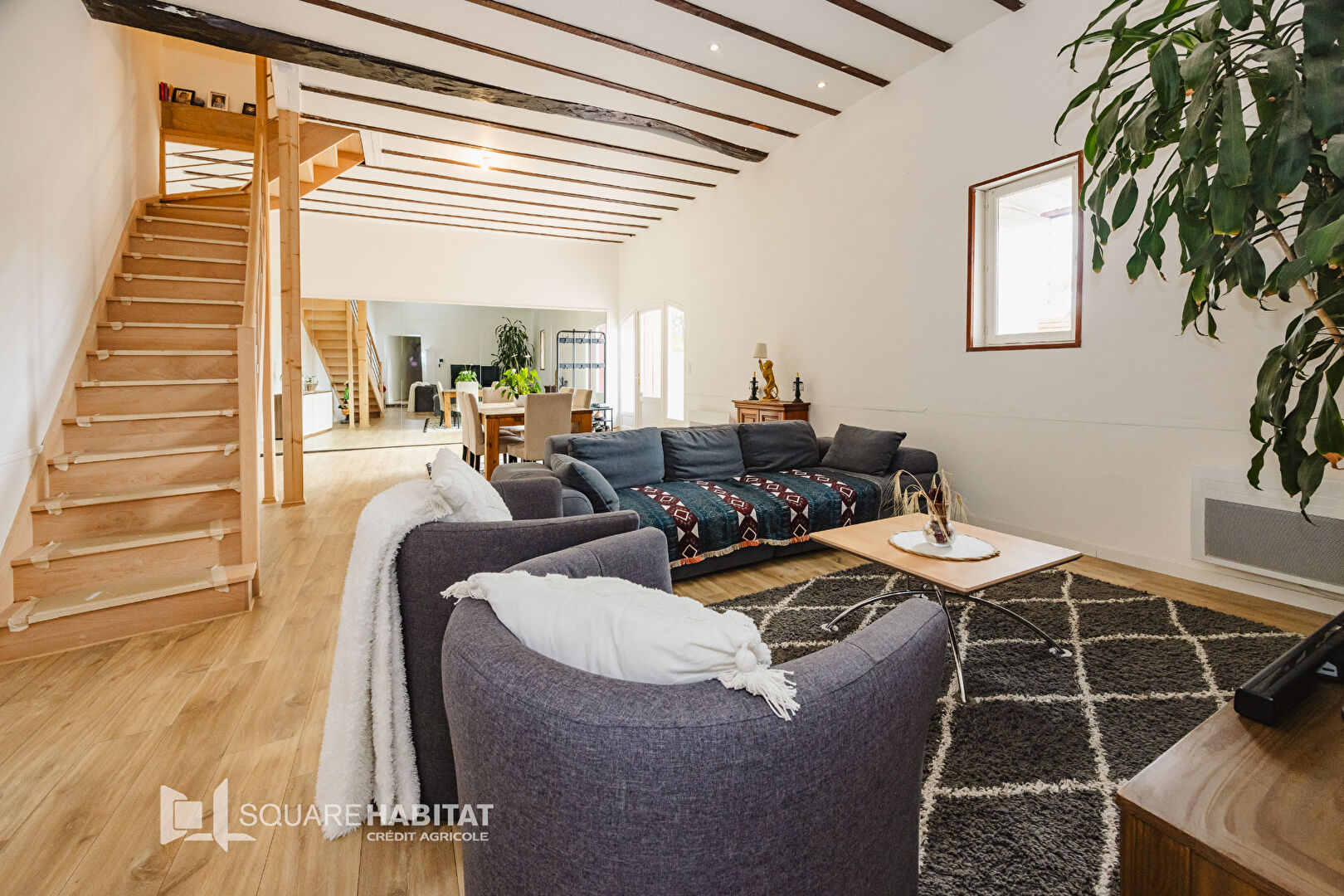 - Un grand espace salon / salle à manger (43 m²) au caractère de l'ancien avec ses poutres apparentes et sa belle hauteur sous plafond d'environ 3.5 m.