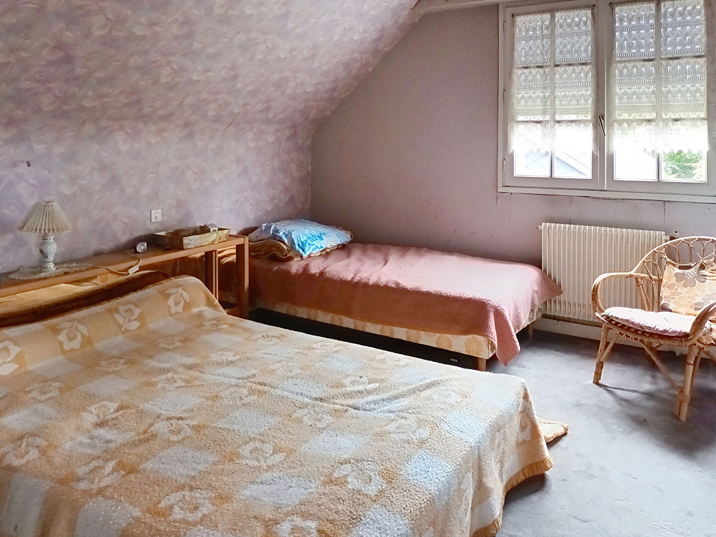 De construction traditionnelle, sur sous-sol complet, elle vous offre au rez-de-chaussée : un hall d'entrée, une cuisine aménagée, un séjour avec cheminée, deux chambres, une salle de bain.