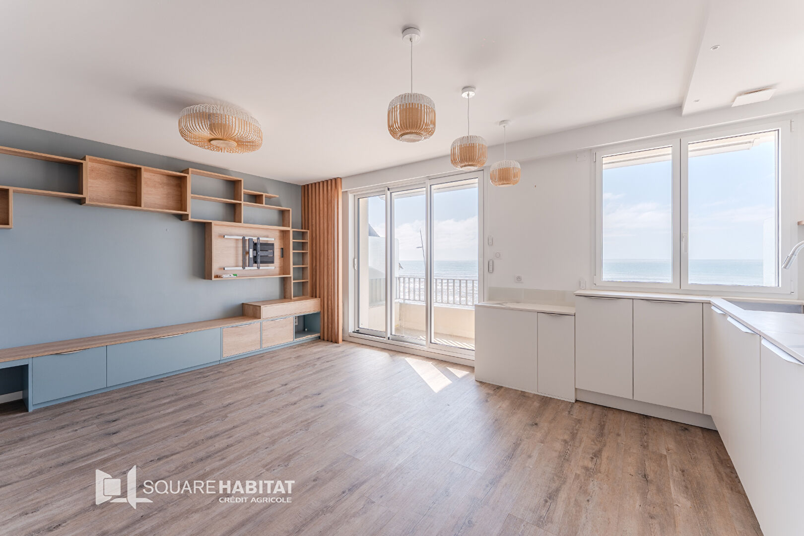 Le balcon et le salon-séjour vous permettent de profiter pleinement de la vue sur la mer.