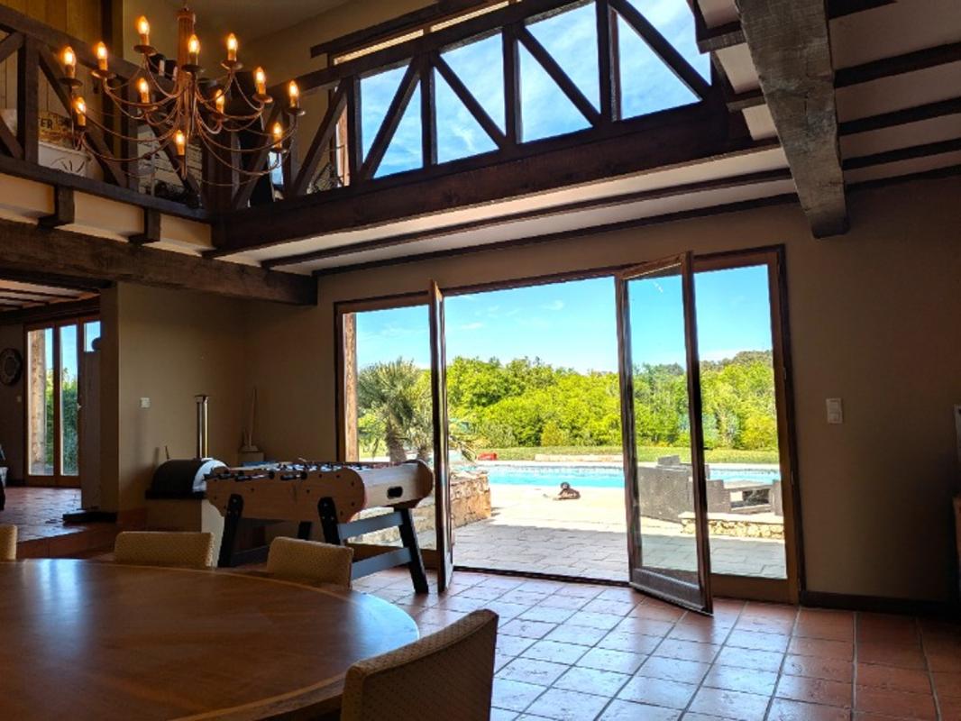 THE BENS TEAM® by KW HLC a le plaisir de vous présenter en Exclusivité ce domaine rare et inspirant, situé à seulement 15 minutes de Bergerac, au coeur d'un environnement naturel préservé. Ce lieu unique de plus de 10 hectares d'un seul tenant, entre prairies et bois, offre une surface bâtie d'environ 900 m², alliant charme authentique, prestations touristiques et fort potentiel d'exploitation. Une propriété à multiples visages La maison principale, ancien séchoir à tabac entièrement réhabilité, séduit par ses volumes généreux, sa luminosité et son atmosphère chaleureuse. Elle se compose : D'une vaste pièce de vie en enfilade : cuisine, salle à manger et salon. De quatre suites indépendantes, chacune avec salle d'eau ou salle de bains. D'espaces extérieurs conviviaux et intimistes, parfaits pour les instants de partage. Des hébergements touristiques déjà opérationnels Gîte T2, idéal pour un couple ou une étape en itinérance. Gîte T5, spacieux et fonctionnel, parfait pour accueillir familles ou groupes d'amis. Chaque gîte bénéficie de son propre espace extérieur privatif et de son stationnement. Des expériences insolites prisées Deux kotas finlandais et une cabane perchée, très appréciés par une clientèle en quête d'authenticité et d'expériences atypiques. Piscine avec plage aménagée et terrasse panoramique. Étang poissonneux, mare naturelle, et vues dégagées sur la campagne. Annexes et potentiel de développement Grange indépendante à fort potentiel : réception, atelier, logements supplémentaires... Assainissement individuel conforme Chauffage bois et électrique. Taxe foncière 2024 : 6 126 € Activité commerciale en forte croissance Données clés de l'activité des gîtes et logements insolites : CA 2022 : 19 915 € CA 2023 : 49 336 € CA 2024 : 51 354 € Évolution de +158 % en deux ans Points forts de l'activité : CA multiplié par 2,5 en deux ans : preuve d'un démarrage structuré et efficace EBE proche de l'équilibre, signe d'une rentabilité bientôt atteinte Investissements structurels réalisés : mobilier, équipements, aménagements Activité immédiatement exploitable avec fort potentiel de croissance : marketing, digitalisation, élargissement de la saisonnalité. Accès & commodités Gare SNCF de Lamonzie-Saint-Martin : 10 minutes Gare SNCF de Bergerac : 20 minutes Accès A89 : 10 km Aéroport de Bergerac : connexions régulières avec l'Angleterre et les Pays-Bas toute l'année École élémentaire à proximité Tous commerces et services à Bergerac Un bien rare pour vivre et entreprendre Ce domaine s'adresse autant à une famille en quête d'un art de vivre au vert, qu'à des porteurs de projets touristiques ou événementiels. L'ensemble est immédiatement exploitable, avec encore de nombreuses possibilités de valorisation.
