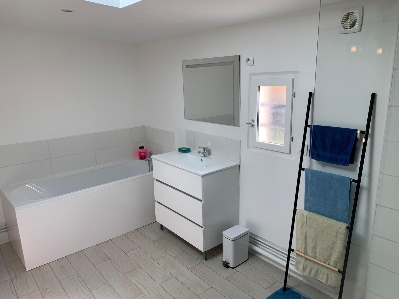 Le logement se compose d'une entrée avec son vestiaire, d'une cuisine aménagée, d'une salle de bain neuve avec baignoire et douche et d'un séjour donnant sur la terrasse.