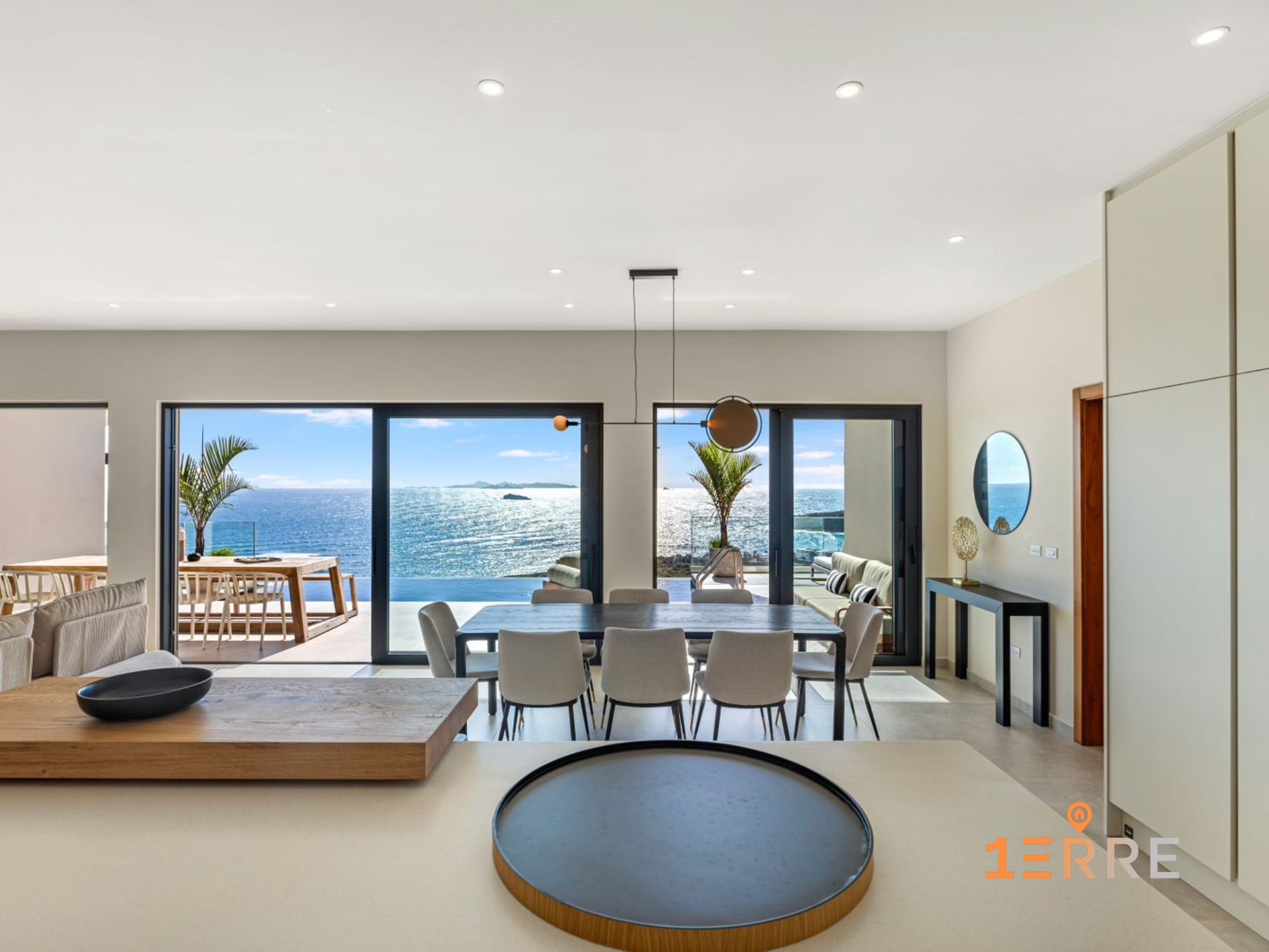 Vivez le style Saint-Martin (côté néerlandais) : Une Villa Moderne, entièrement meublée, aux vues mer panoramiques sur St Barth avec vue directe sur St-Barth.