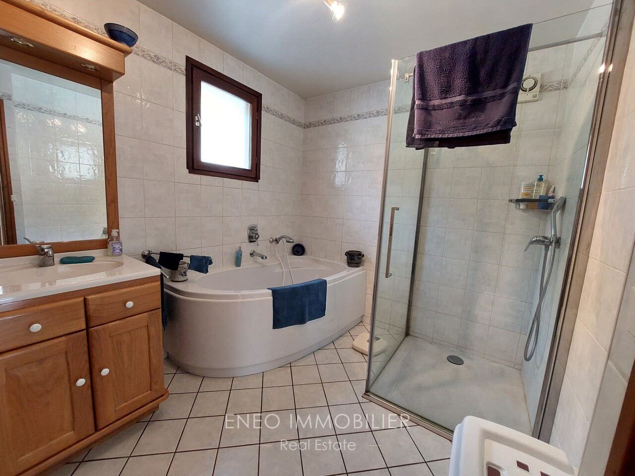 Elle se développe sur trois niveaux. L’appartement occupe les deux étages supérieurs et comprend un séjour ouvrant sur un balcon et une terrasse, une cuisine indépendante, quatre chambres, une salle de bains avec baignoire et douche, une salle d’eau avec WC ainsi qu’un WC séparé.