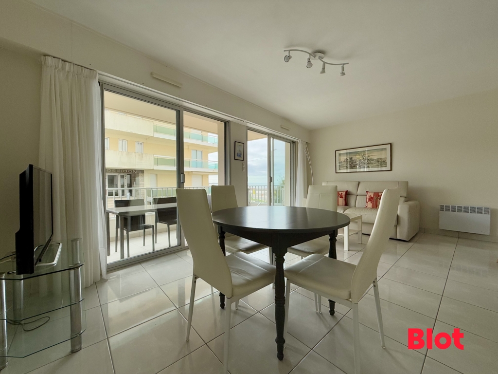 L'appartement offre un séjour lumineux, grâce à de larges baies vitrées ouvrant sur une terrasse exposée côté mer. La cuisine indépendante, avec possibilité d'ouverture sur la pièce de vie, se prolonge par une seconde terrasse à l'arrière, apportant un réel confort au quotidien. Une chambre au calme ainsi qu'une salle de bains avec WC complètent l'ensemble.