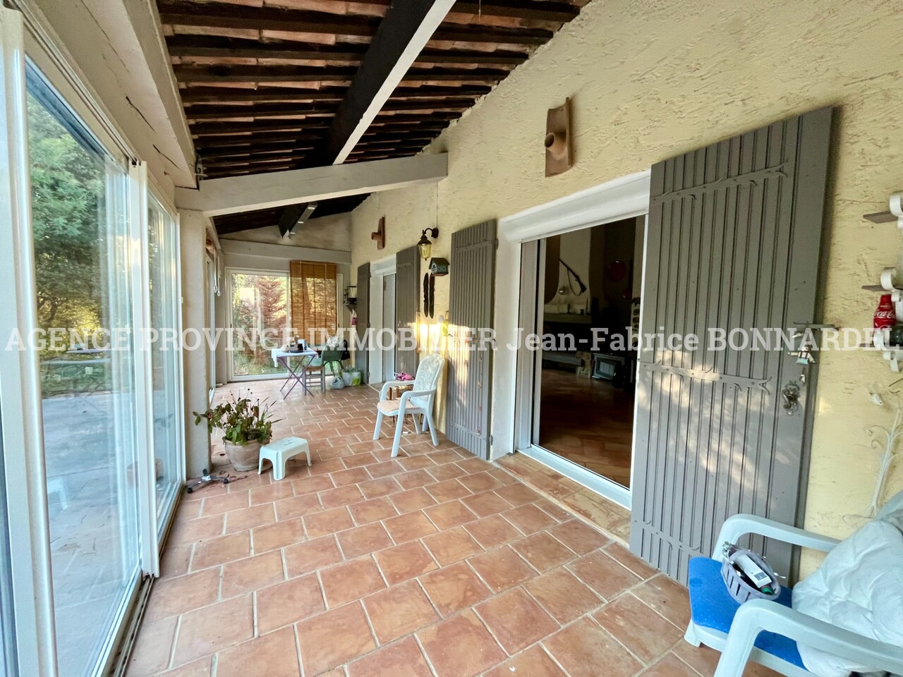 Cette maison de caractère exclusivement de plain-pied profite d’un bel environnement, au calme, sans vis-à-vis.