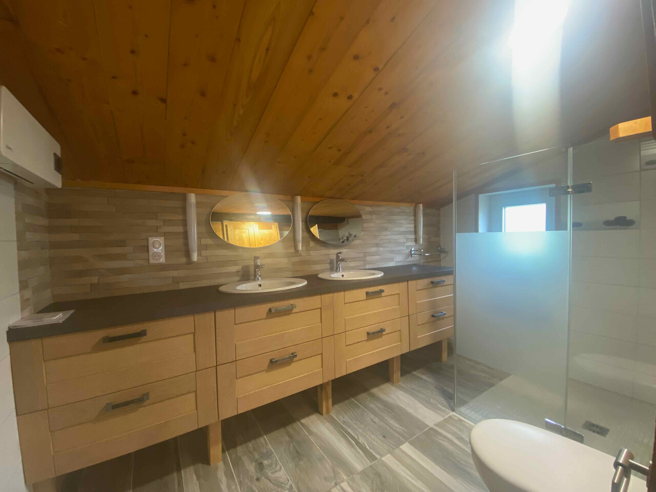Au niveau 1 : pallier, mezzanine, salle d'eau avec douche/wc, chambre;