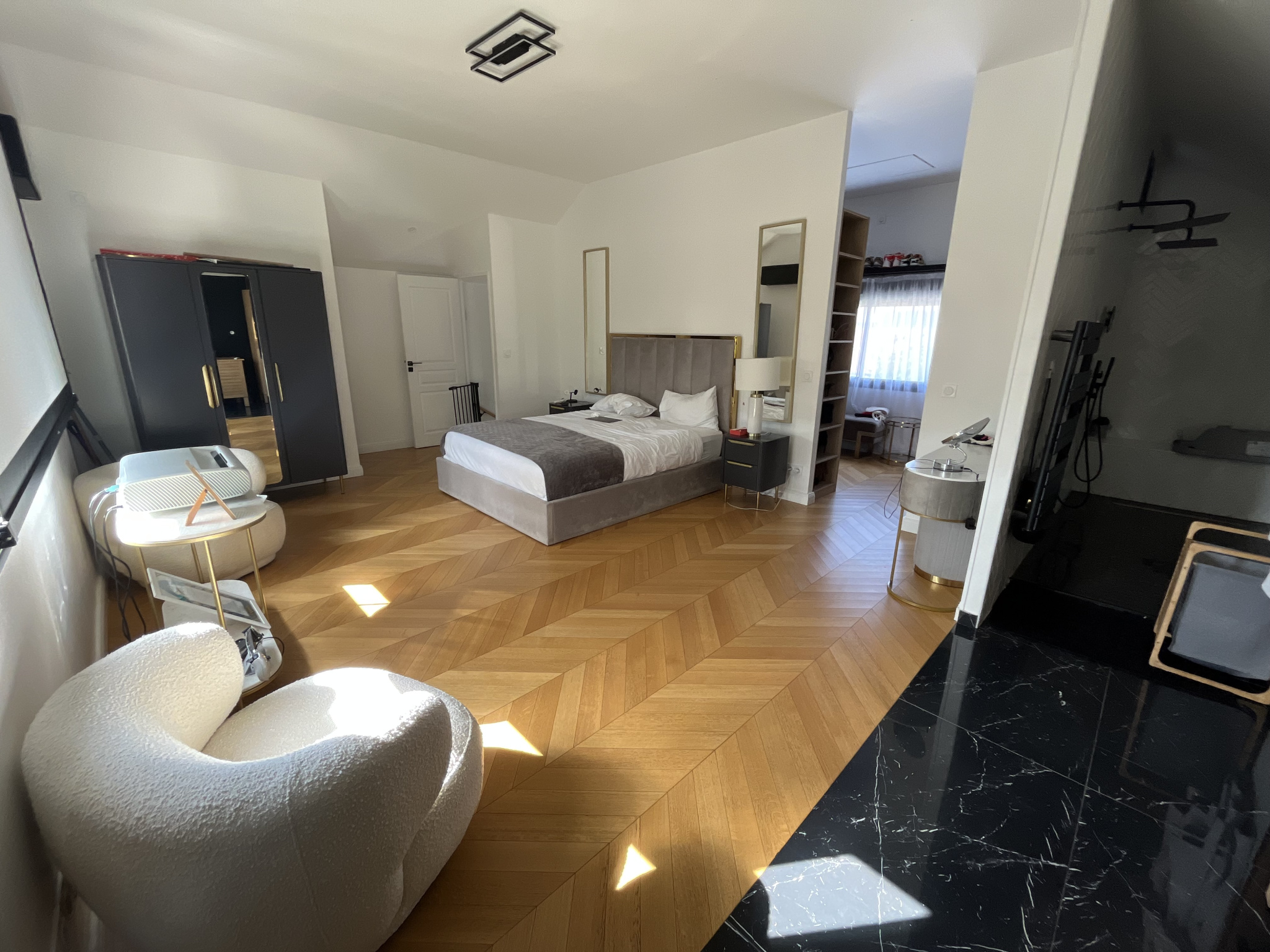Au dernier étage une magnifique suite parentale d'environ 43 m2 environ occupant tout l'étage, avec un dressing spacieux, une salle d'eau avec double douche à l'italienne, double vasque et WC séparé.