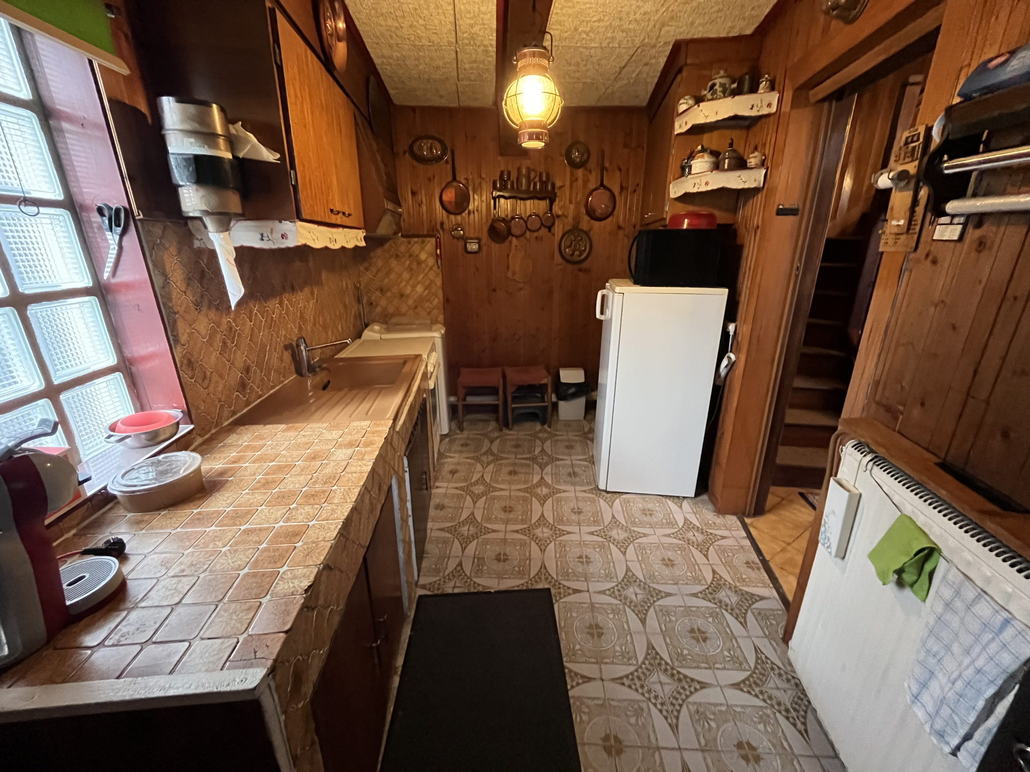 Son entrée au rez de chaussée se fait dans une véranda qui permet d'accèder à la salle à manger puis nous trouvons d'un côté un salon et de l'autre une cuisine à aménager, un toilette et une douche complète le rez de chaussée,