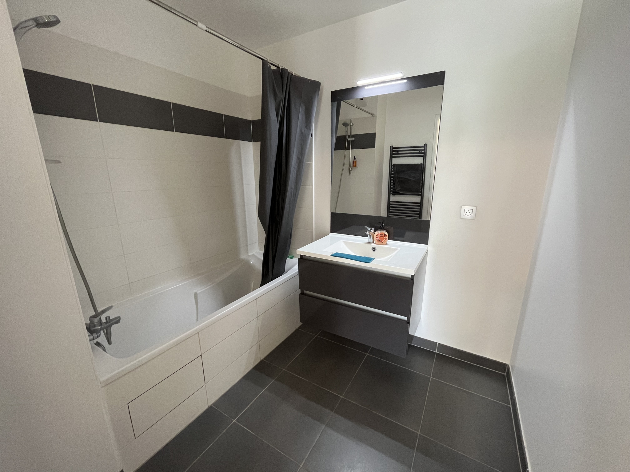 L'entrée se fait dans le séjour de 27m2 avec l'accès à la grande terrasse de près de 20m2, deux chambres, une salle de bains, un grand wc et une buanderie indépendante !