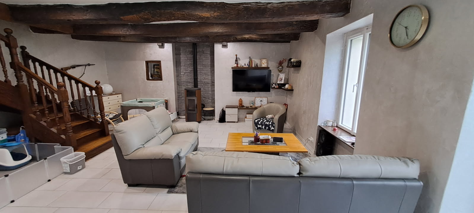 D'une surface habitable de 150 m², cette maison chaleureuse et lumineuse se compose au rdc d'une entrée avec rangements intégrés, desservant une cuisine équipée et aménagée, d'un vaste salon-séjour lumineux avec son poêle à granulés, d'un WC indépendant.