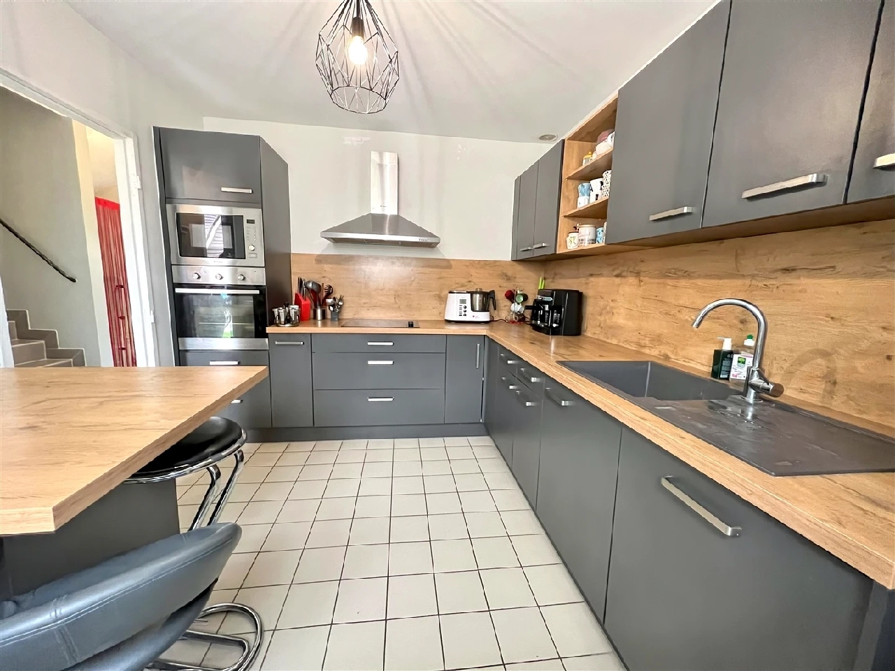 DESCRIPTIFS DE CETTE MAISON À VENDRE : Entrée avec rangements, Cuisine aménagée et équipée, Séjour (25 m² ) avec accès jardin arrière, 3 Chambres, Salle de Bains, 2 W-c.