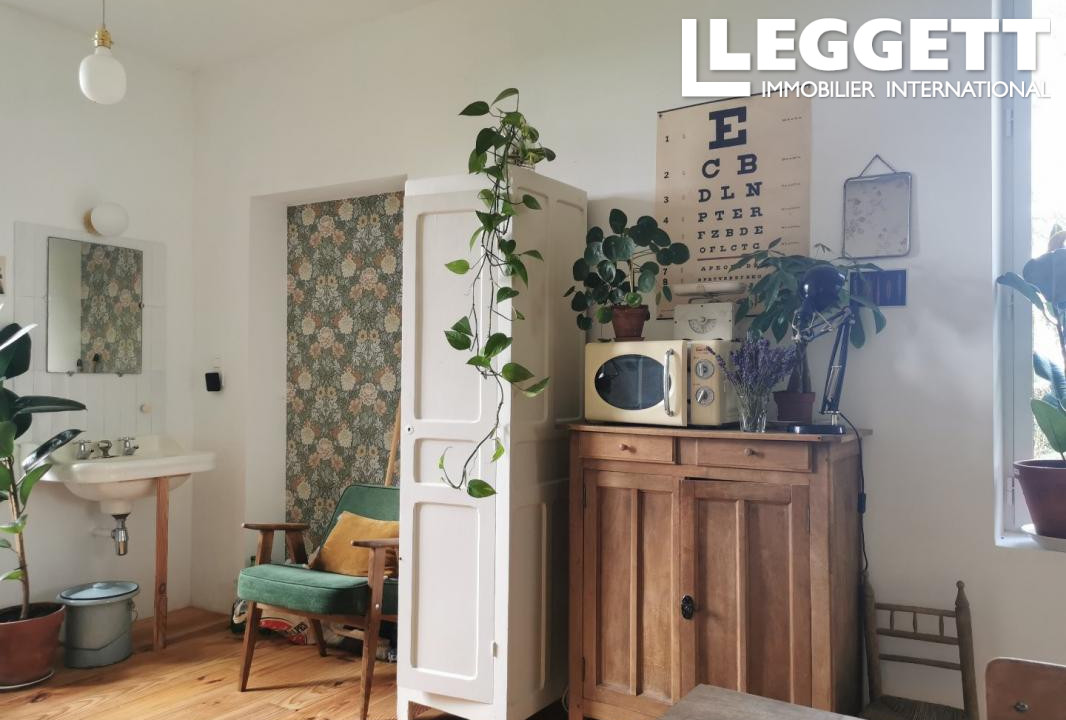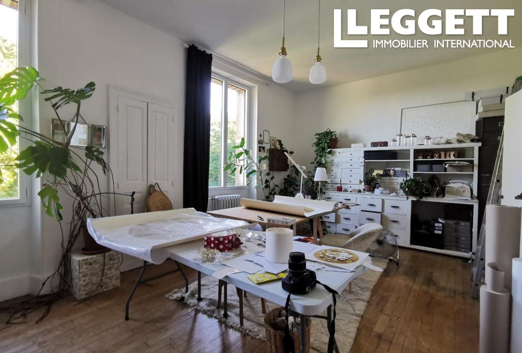 La maison offre de grandes pièces lumineuses alliant charme de l'ancien et améliorations modernes. Rez-de-chaussée : hall d'entrée, salle à manger, salon lumineux de 42 m², pièce attenante prête à être aménagée en cuisine, chambre, salle de bain, WC séparé, et studio avec entrée indépendante. 1er étage : 4 chambres, salle de bain, pièce prête pour une seconde salle de bain. 2e étage : une chambre, WC et vaste grenier offrant un fort potentiel.