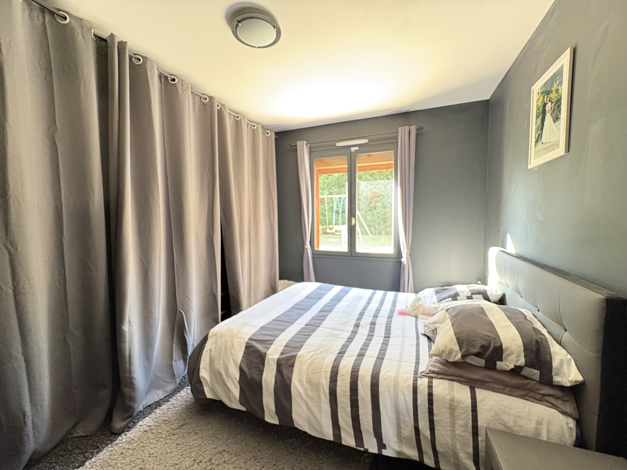 Située dans un environnement calme et verdoyant, cette maison indépendante d'environ 136 m2, entièrement rénovée, allie confort, espace et nature. Elle se compose : - d'un séjour lumineux de 42 m2 avec poêle à granulés, - d'une cuisine ouverte et entièrement équipée, - d'une chambre en rez-de-chaussée, d'une salle de bains et d'un WC, - à l'étage : deux grandes chambres avec leurs salles d'eau avec WC. À l'extérieur, laissez-vous séduire par un superbe terrain arboré de 4 046 m2, un véritable havre de paix pour les familles et les amoureux de nature. Une terrasse de 65 m2 prolonge l'espace de vie, idéale pour vos repas d'été et moments de détente.