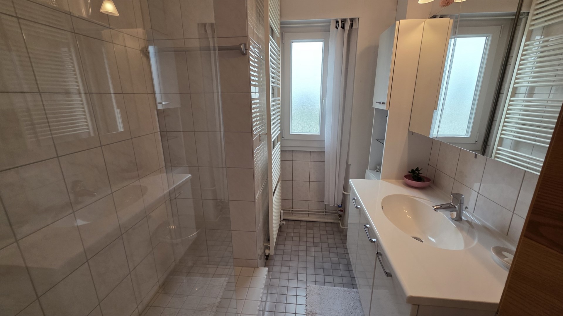 - Au 9ème étage avec ascenseur : une entrée avec placards, WC séparé, une cuisine indépendante, dégagement, vaste séjour de 40m² (possibilité d'y créer une 3ème chambre) avec accès sur un balcon offrant une belle vue dégagée, 2 chambres dont une avec balcon (11m² et 16m²) et 1 bureau (7m²), une salle d'eau.