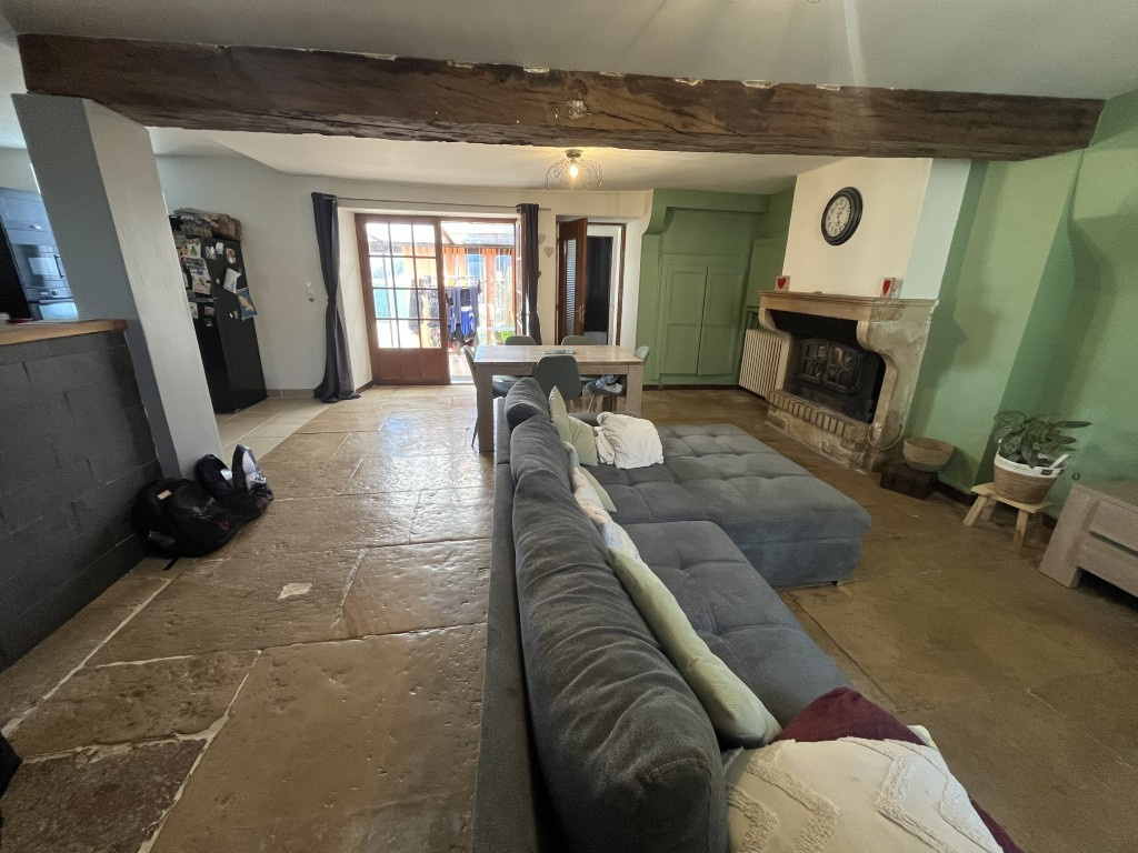 Entrée sur salon / séjour / cuisine avec cheminée insert - Accès à une véranda et terrasse extérieure sur jardin - Salle de bain / buanderie - WC indépendant