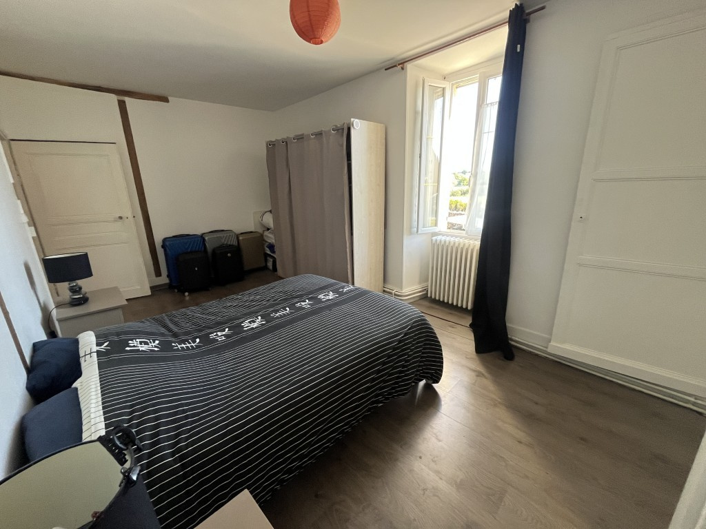 Entrée sur salon / séjour / cuisine avec cheminée insert et accès extérieur sur terrasse et jardin - 2 chambres - Dégagement - Salle de douche - WC indépendant
