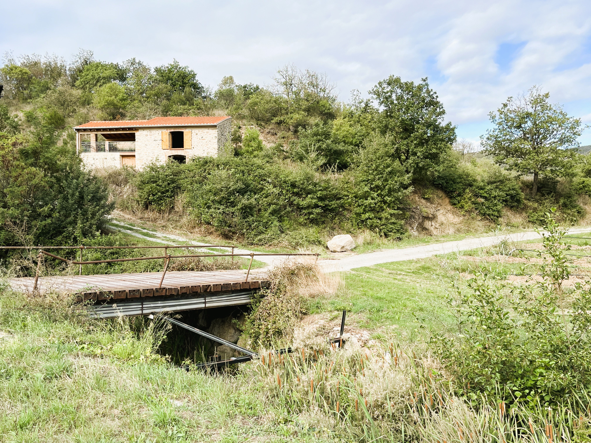 La propriété s'étend sur 30 hectares, dont une partie en exploitation maraîchère certifiée bio, avec également un verger de pêchers. Une bâtisse de 90 m2, déjà dotée d'une terrasse avec vue imprenable sur le Canigou, reste à aménager selon vos envies.