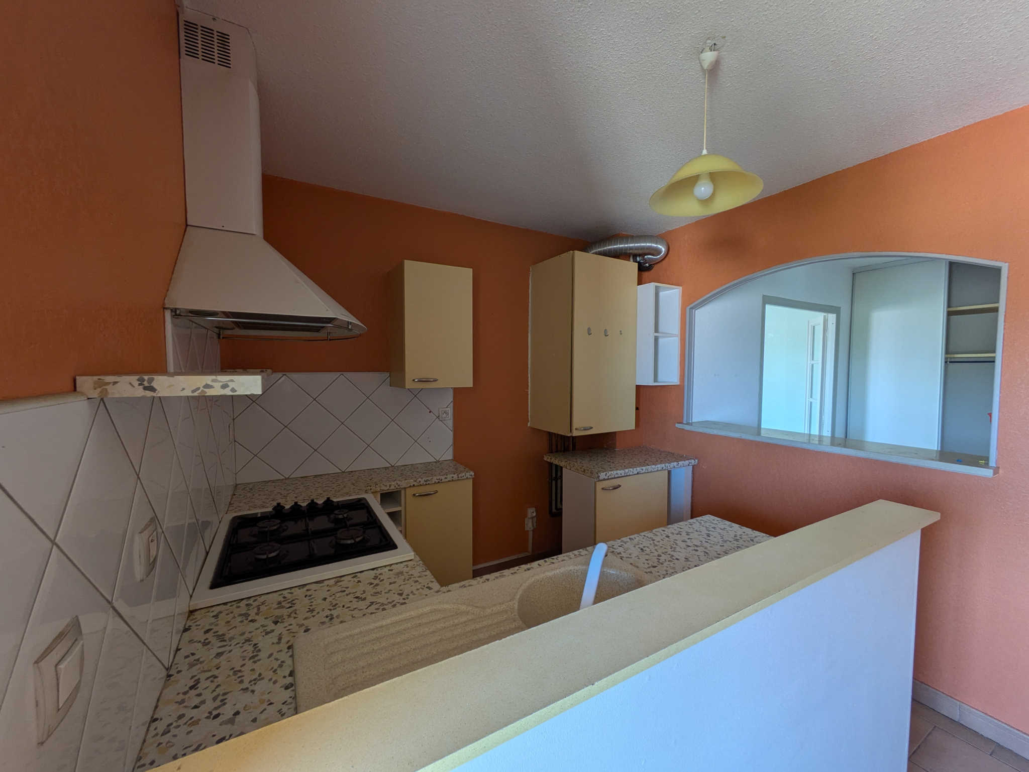 Le logement comprend une entrée qui donne sur une cuisine séparée et semi équipée, une salle de bain, un espace nuit comprenant 2 chambres,et un coin salon de 26m2.