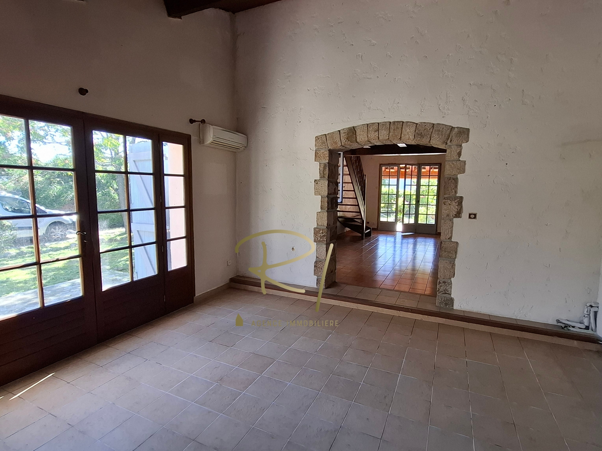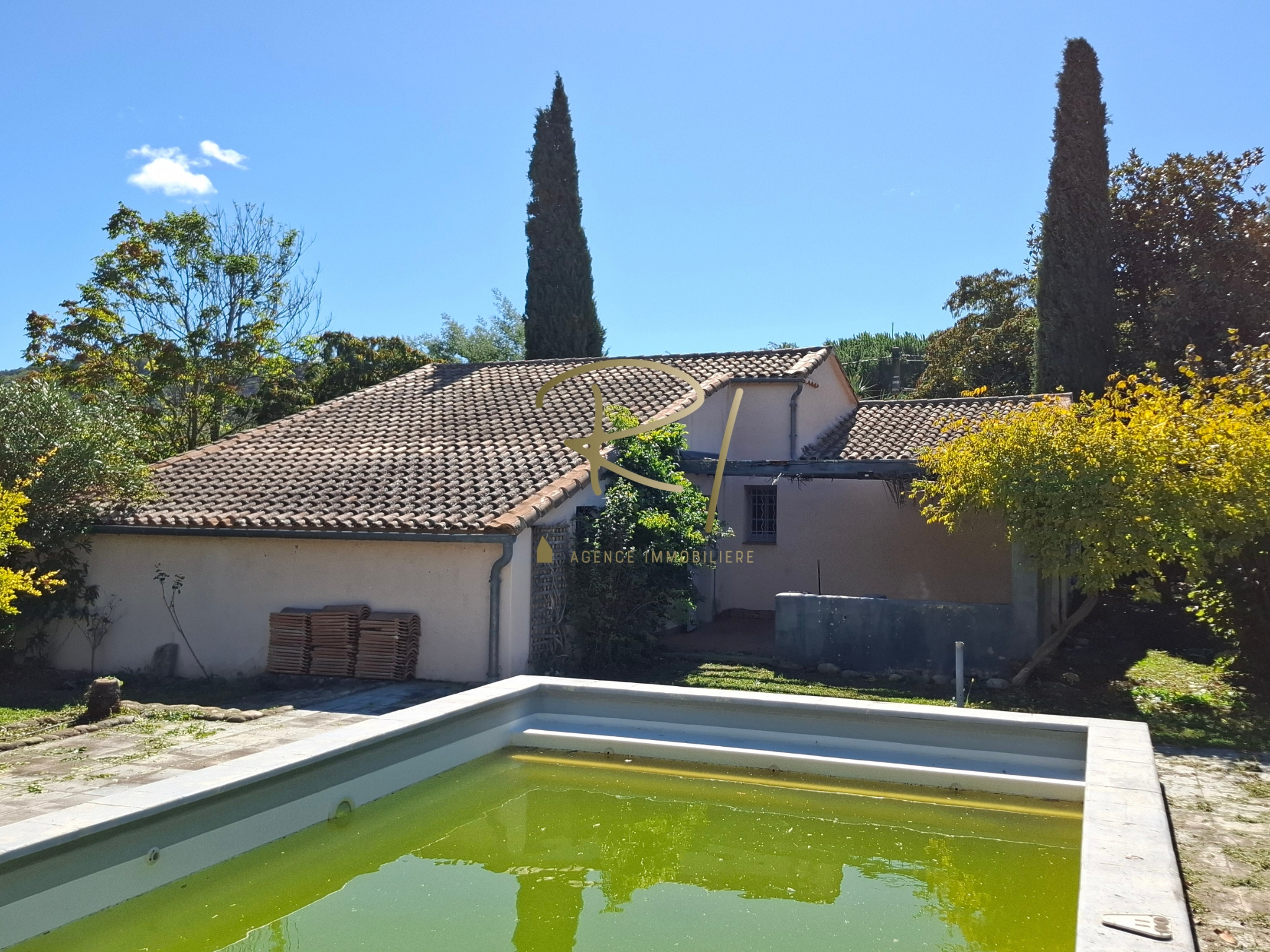 À vendre, maison de plain-pied des années 80, à seulement 2 min du village des Vans et avec la rivière accessible à pied. Édifiée sur un beau terrain plat et arboré de 1530 m2 avec espace piscine, elle offre environ 100 m2 habitables comprenant un bel espace de vie avec cheminée, deux chambres, une mezzanine pouvant servir de chambre d'appoint ou de bureau, une salle d'eau, une cuisine ainsi qu'un garage.