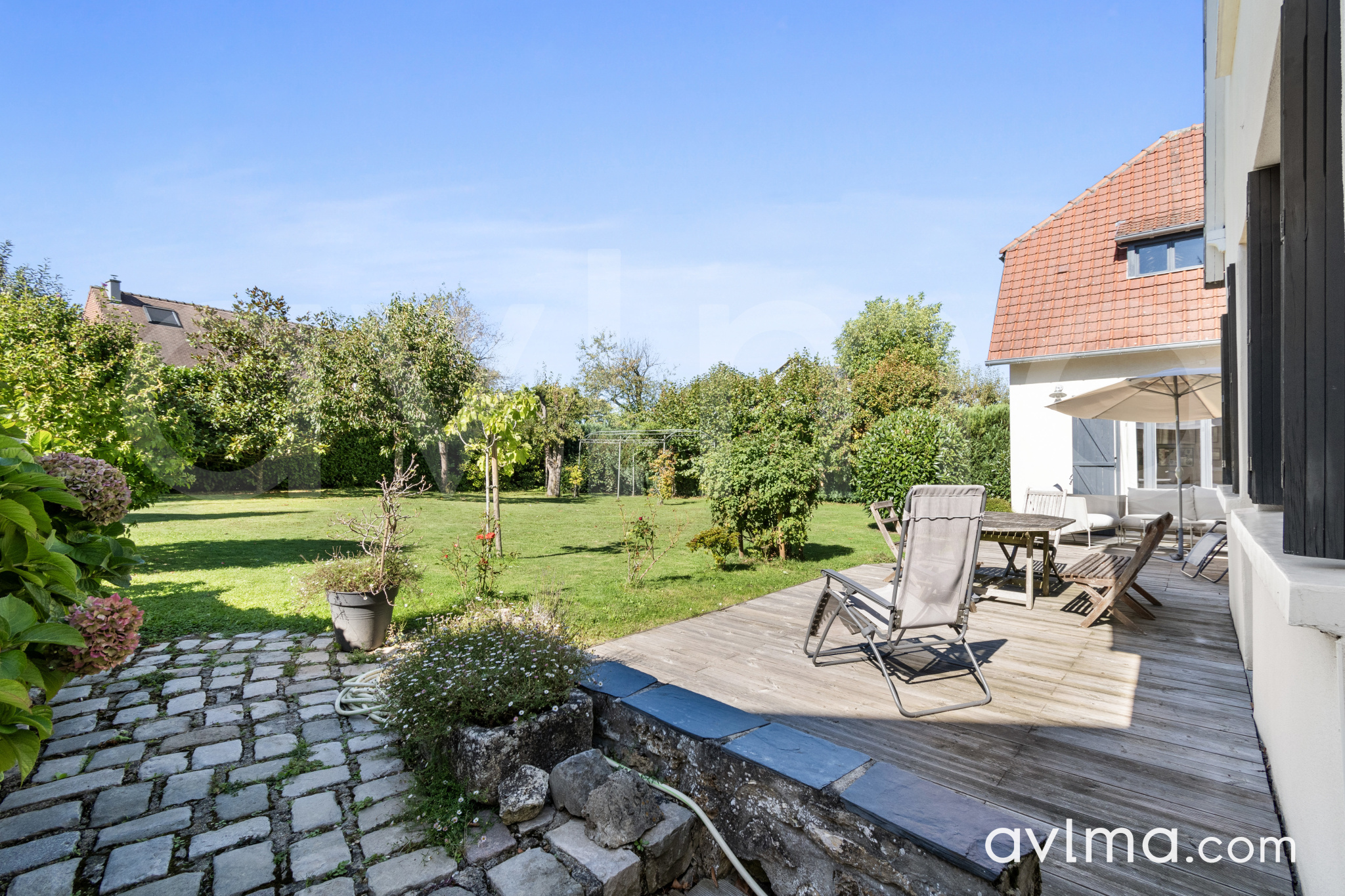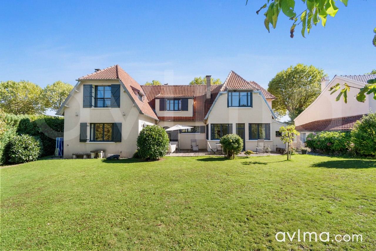 Cette superbe maison, agrandie en 2011, allie le charme de l'ancien au confort moderne. Idéalement située au coeur du village, elle se trouve à deux pas des commerces, des infrastructures sportives et des arrêts de bus vers la gare, le lycée international ainsi que les lycées et collège de secteur. Dès l'entrée, vous serez séduits par une très belle pièce de vie baignée de lumière et une grande salle à manger qui invite à recevoir. La cuisine indépendante offre un espace fonctionnel. Une pièce aujourd'hui utilisée comme studio de yoga peut facilement devenir un bureau ou une salle de jeux. Une chambre de plain-pied avec sa salle d'eau et des WC invités complètent ce rez-de-chaussée. À l'étage, un beau palier en parquet ancien dessert trois chambres lumineuses, une salle de bain et des toilettes. Vous découvrirez également une magnifique pièce de 67 m2, à aménager, offrant la possibilité de créer deux chambres supplémentaires ainsi qu'une salle de bain avec WC. Les arrivées d'eau et d'électricité sont déjà prévues pour faciliter votre projet. À l'extérieur, la propriété repose sur une belle parcelle de 1 187 m2, entièrement piscinable, où vous profiterez d'un grand jardin paysager. Vous bénéficierez d'un garage, de la possibilité de stationner trois véhicules à l'intérieur de la propriété et d'un studio indépendant déjà aménagé, idéal pour recevoir de la famille, accueillir des amis ou créer un espace de travail autonome.