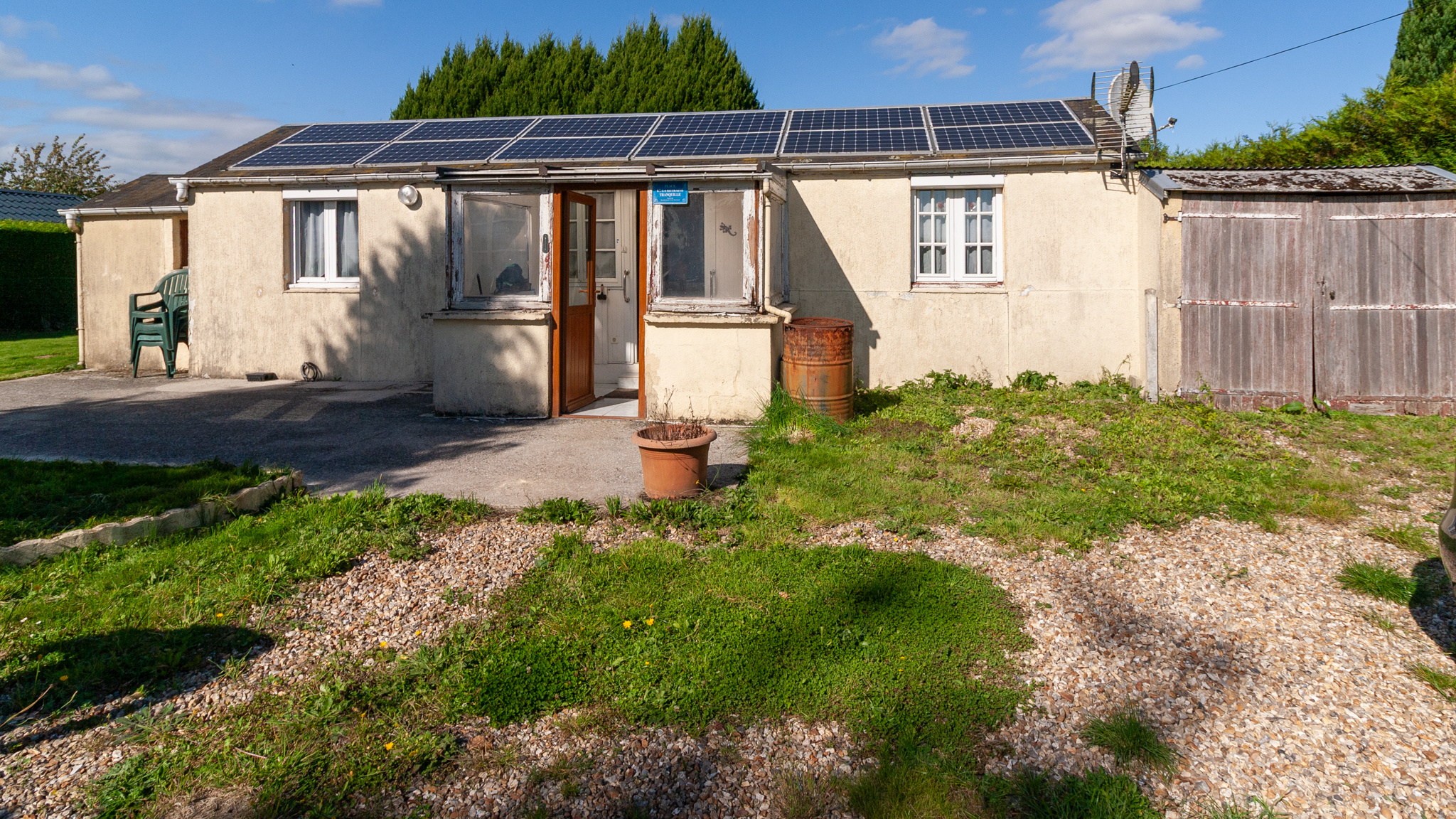 A l'extérieur de ce CHALET OSSATURE BOIS PROCHE A28, vous pourrez profiter d'un garage pour une voiture, d'un abris à bois et d'un atelier en dépendance.