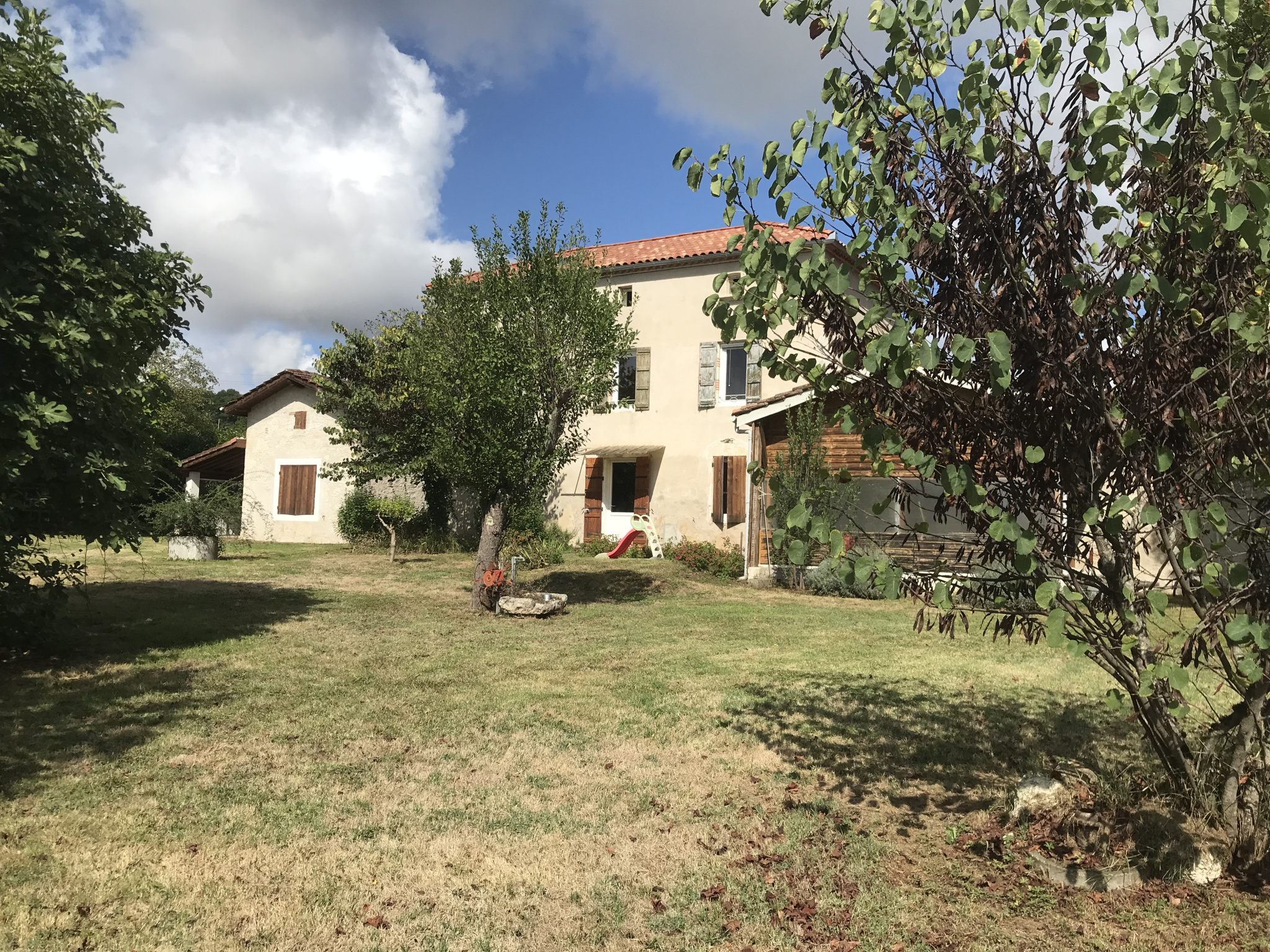 A 20 mn d'Agen, dans un joli cadre champêtre, superbe corps de ferme avec une maison indépendante de 50m2, atelier, séchoir à tabac, porcherie, hangard, préau, puits, l'ensemble sur un hectare de terrain plat. L'habitation principale entièrement rénovée comprend : entrée, cuisine avec salle à manger, poêle à bois, une chambre, salle de bains avec douche et toilettes, étage : salon, deux chambres, toilettes avec lavabo, grenier de 50m2 aménageable. Atelier de 45m2, séchoir à tabac de 80m2, porcherie, préau de 50m2, abri de voitures 60m2, verger, pompe à chaleur, double de vitrage, toiture neuve pour l'habitation principale.