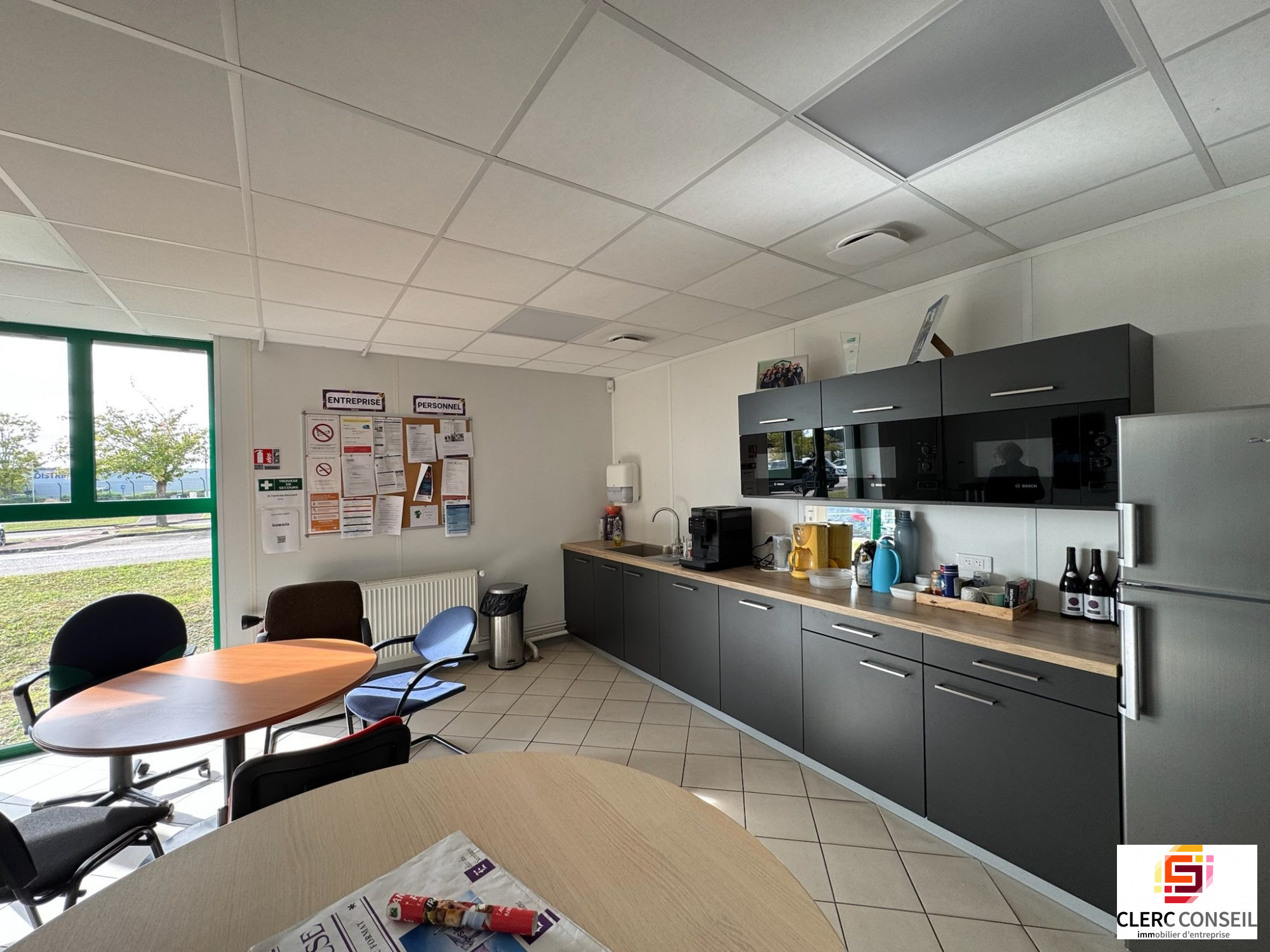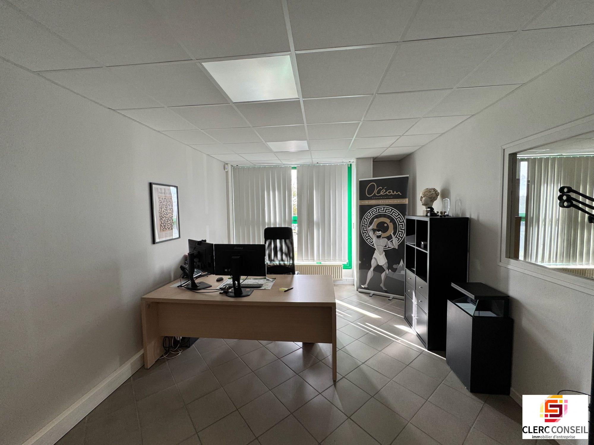 Situé dans une zone d'activité et logistique, bâtiment tertiaire de plain-pied d'une superficie totale de 1 078 m2 environ avec grand parking extérieur clos équipé d'alarmes extérieures.