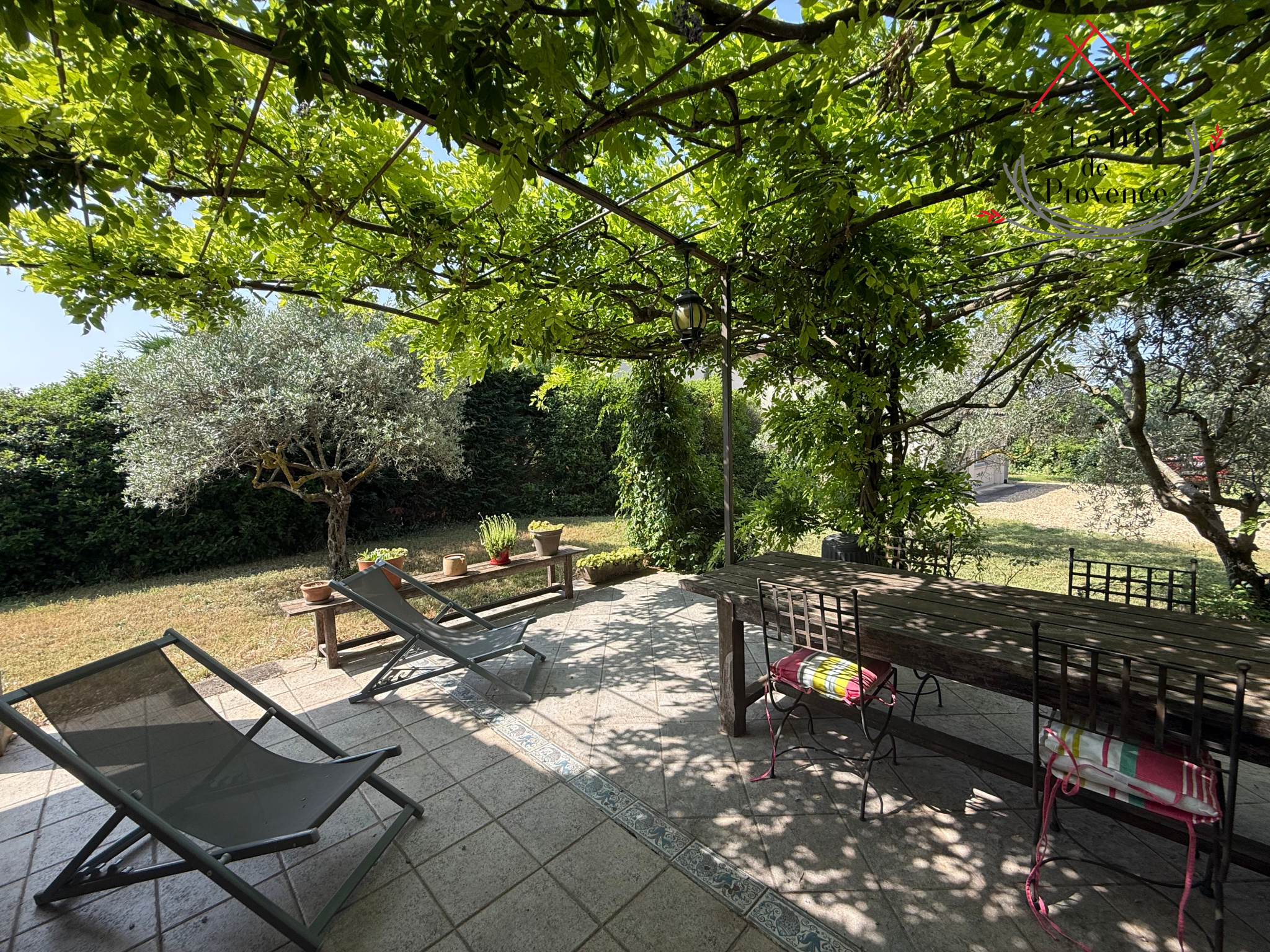 À l'extérieur, le jardin soigneusement arboré propose de véritables espaces de vie. Vous pourrez notamment vous détendre sous une tonnelle provençale ombragée par une glycines, idéale pour profiter des journées d'été à l'abri du soleil.