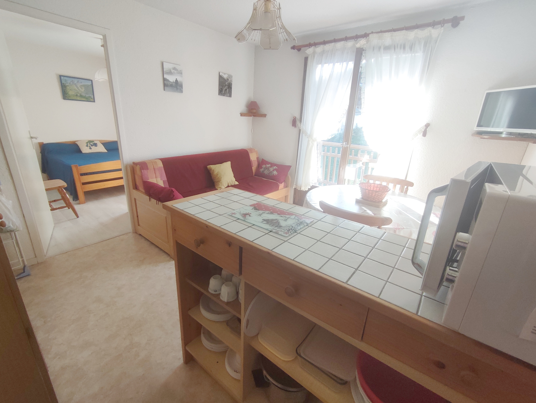 Il se compose d'un séjour lumineux avec kitchenette équipée, d'une chambre, d'une salle de bains et d'un balcon de près de 9 m2 orienté Ouest, idéal pour profiter du soleil et admirer la vue sur les montagnes.